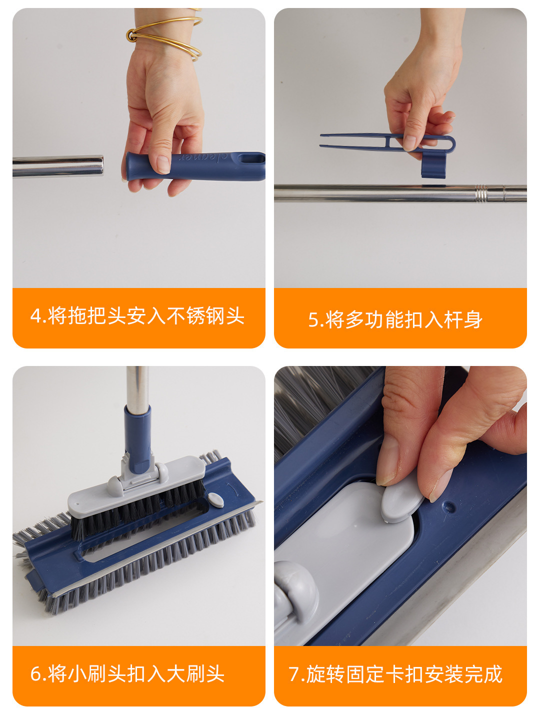 6合1卫生间刷地刷子地板刷洗地刷神奇运输地缝刷瓷砖长柄清洁刷