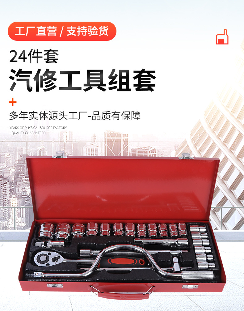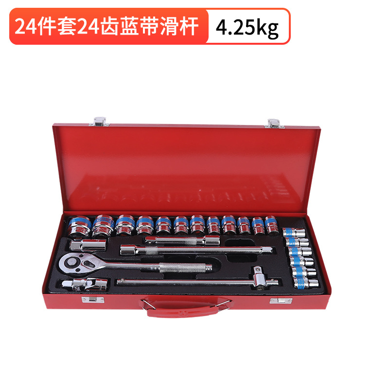 국경 간 24피스 자동 수리 도구 세트, 자동차 기계 유지 보수, 자동차 소켓 렌치 도구 상자 하드웨어 세트스토어 가기