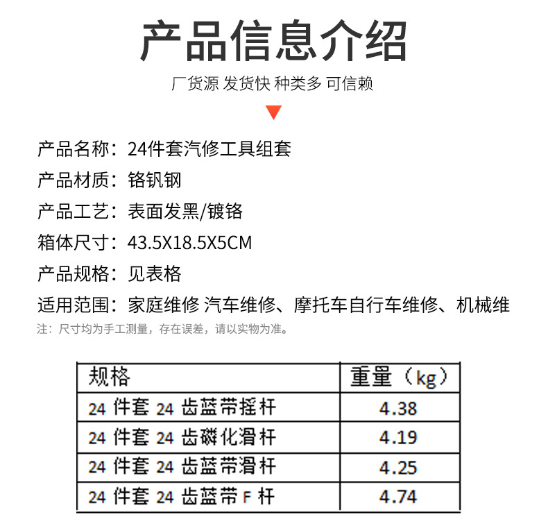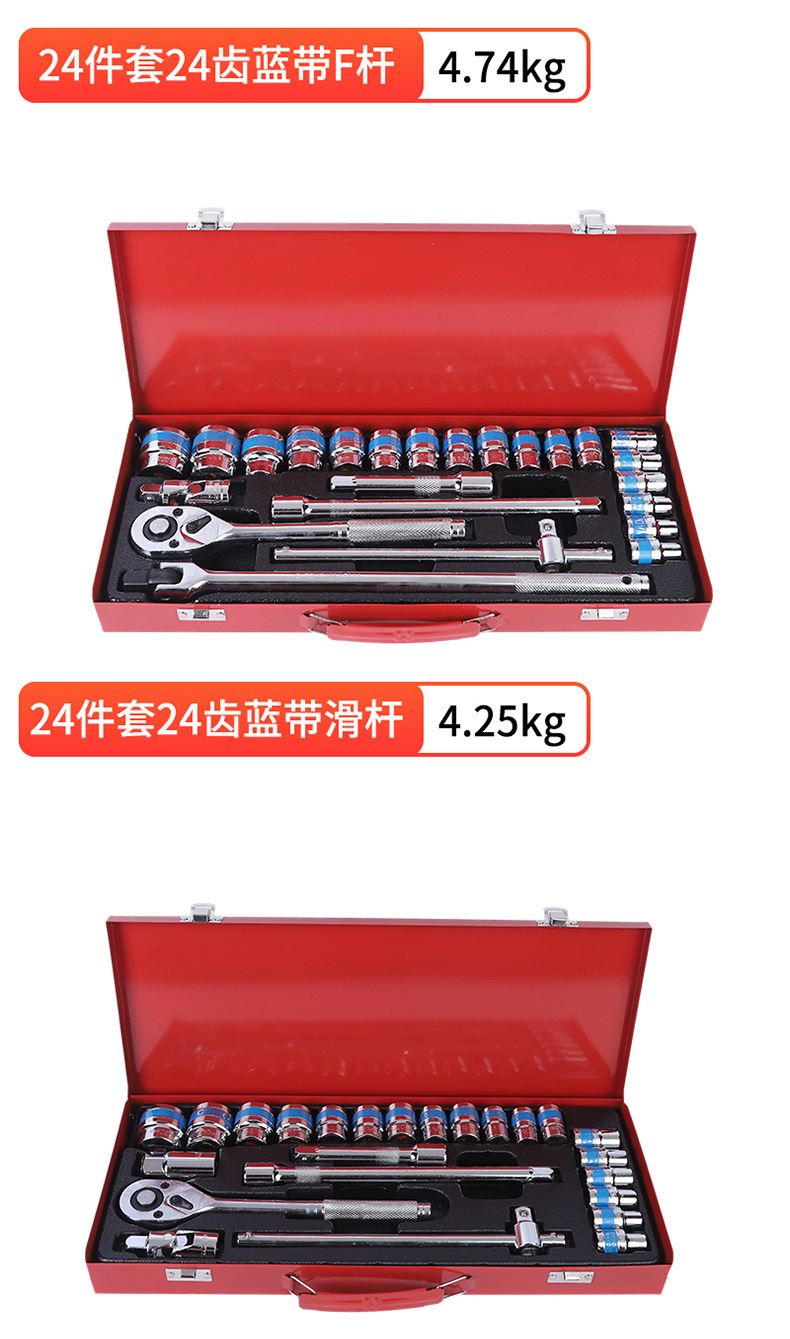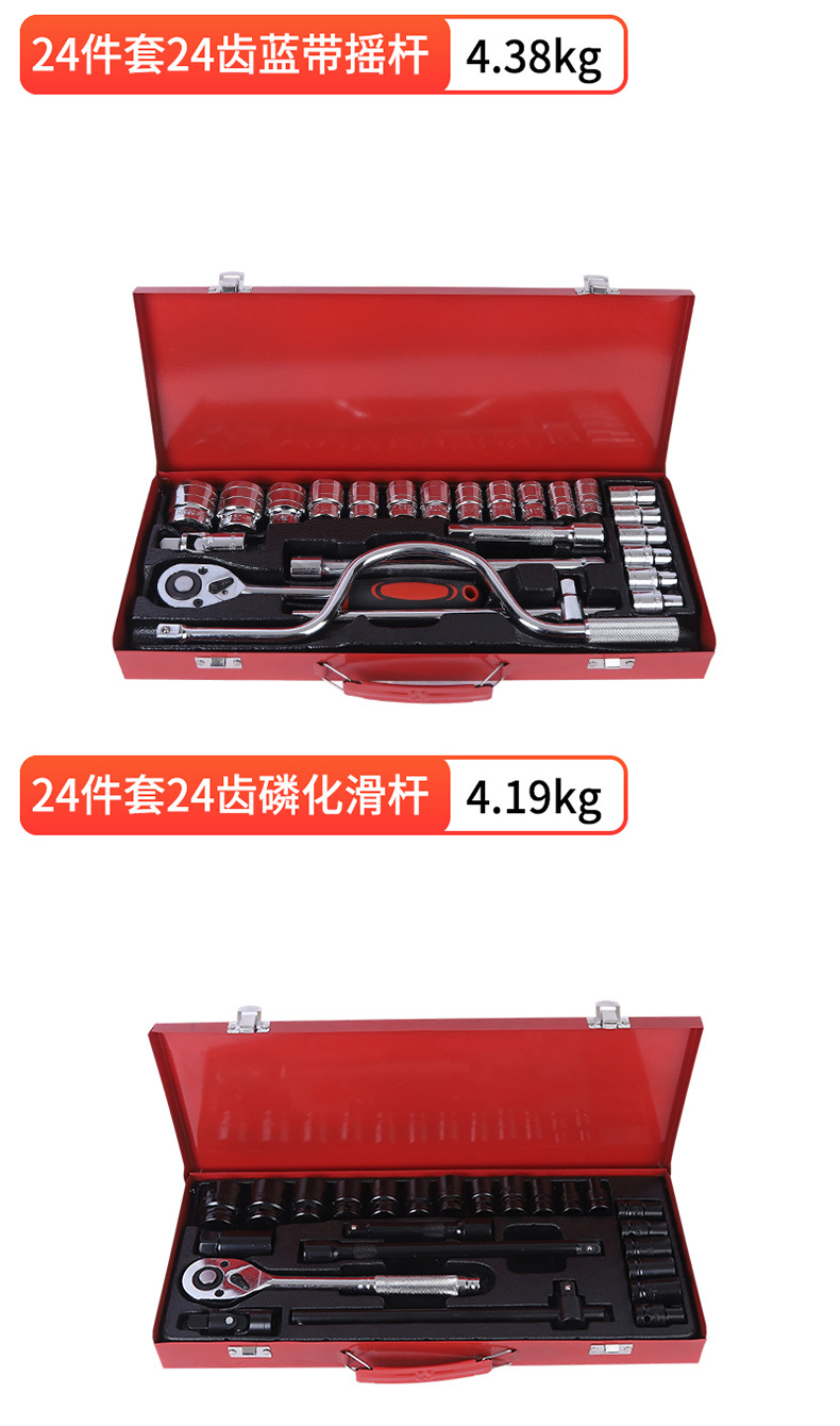국경 간 24피스 자동 수리 도구 세트, 자동차 기계 유지 보수, 자동차 소켓 렌치 도구 상자 하드웨어 세트