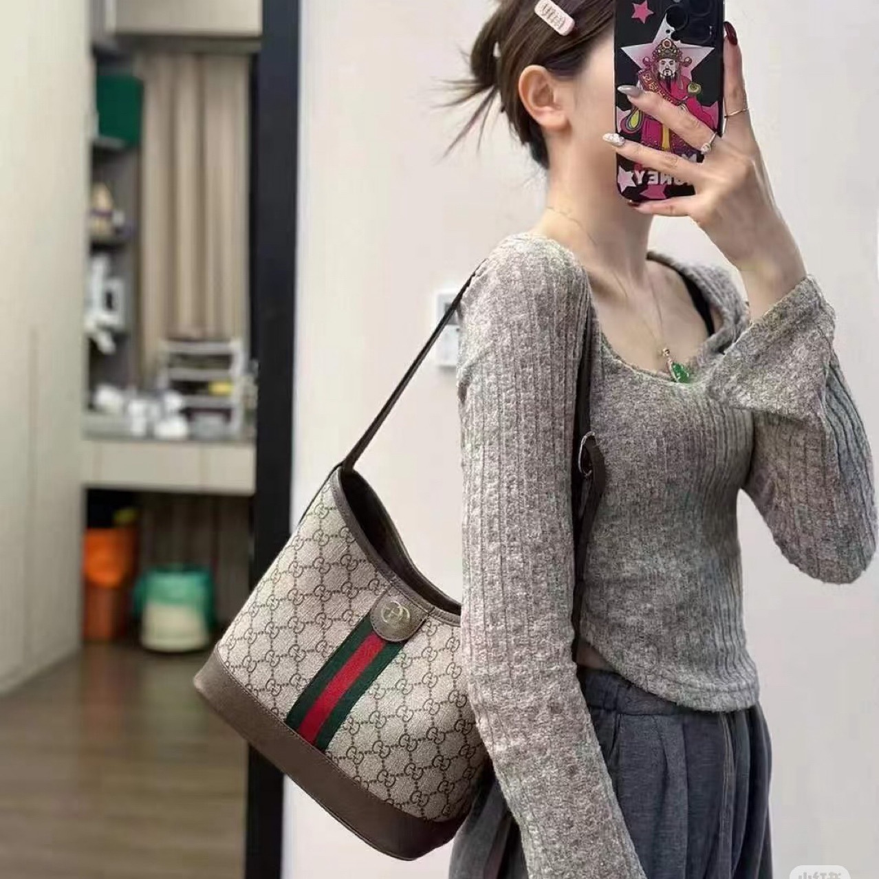 2025 G의 새로운 오리지널 가죽 클래식 오피디아 버킷 백 트렌디 브랜드 순수 소가죽 숄더 크로스백