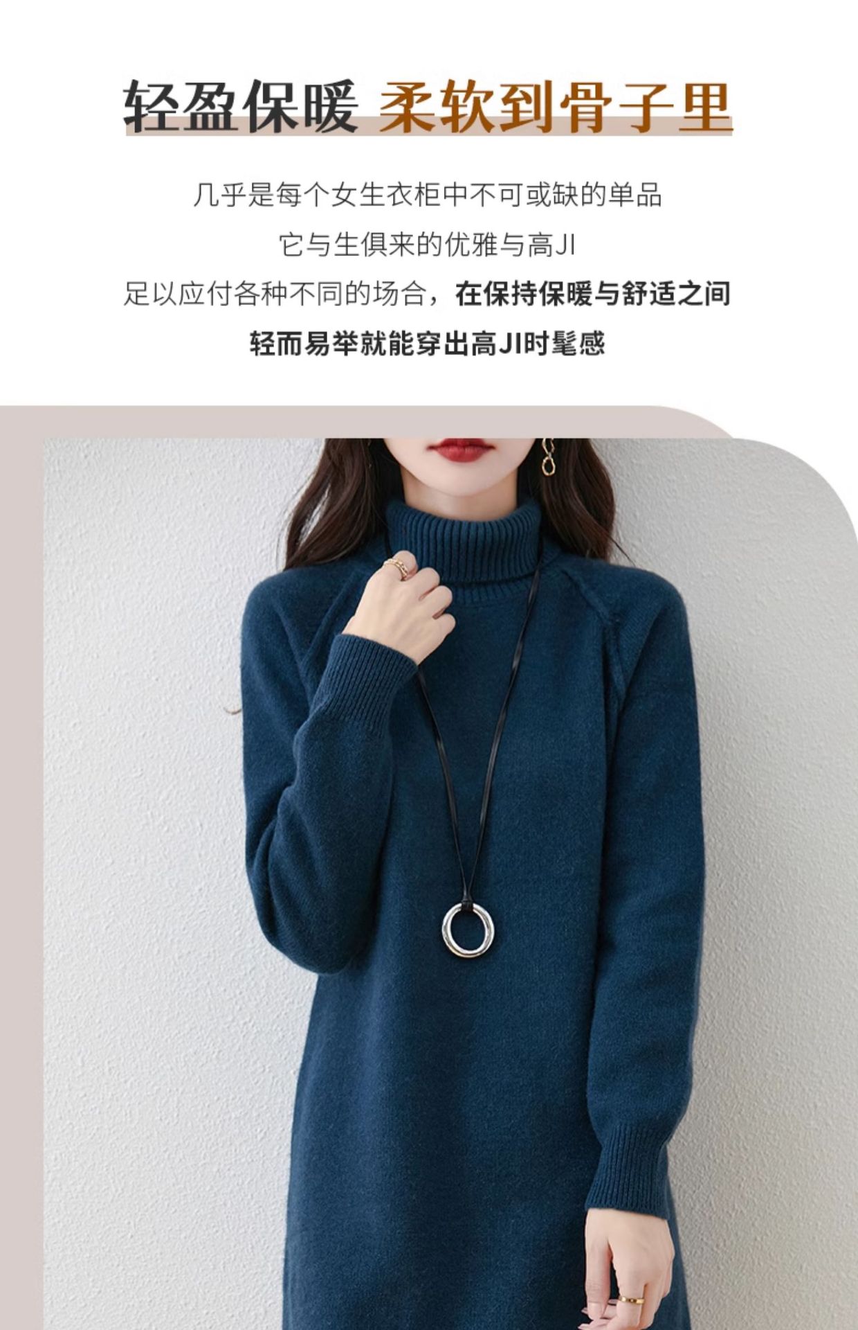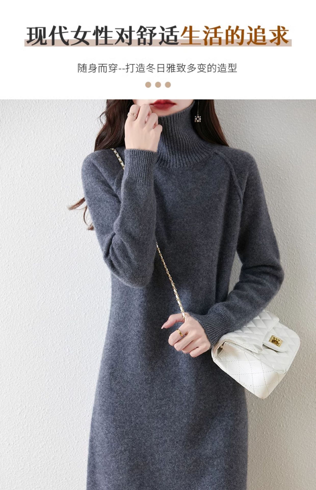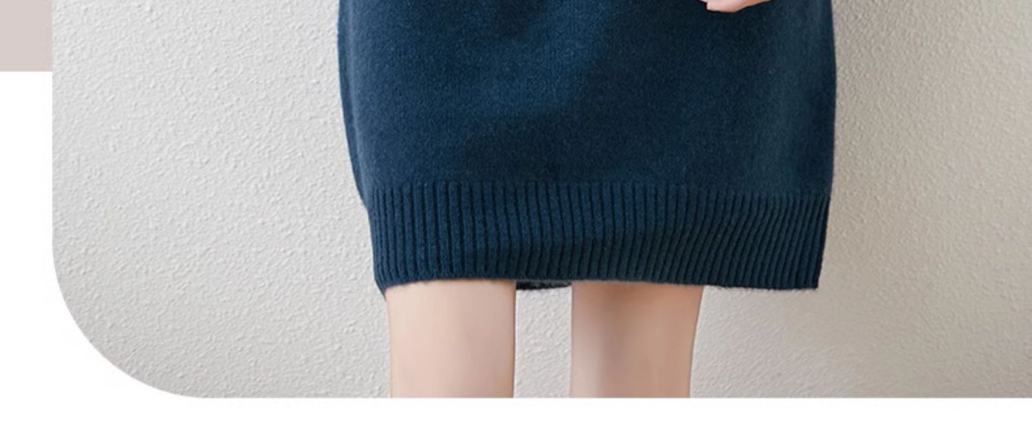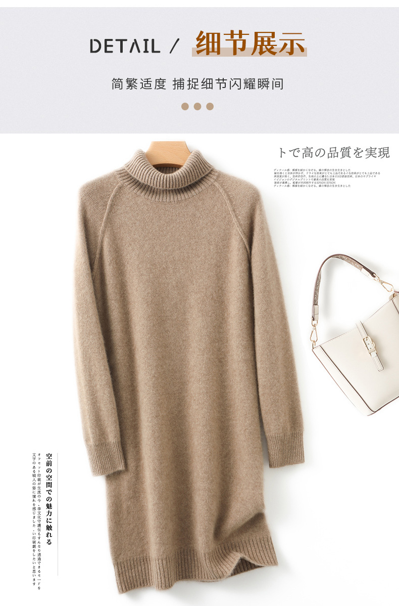 가을, 겨울 두꺼운 솔리드 컬러 드레스 게으른 스타일 하이 라펠 여성 니트 중간 길이 느슨한 라글란 슬리브 스웨터 드레스스토어 가기