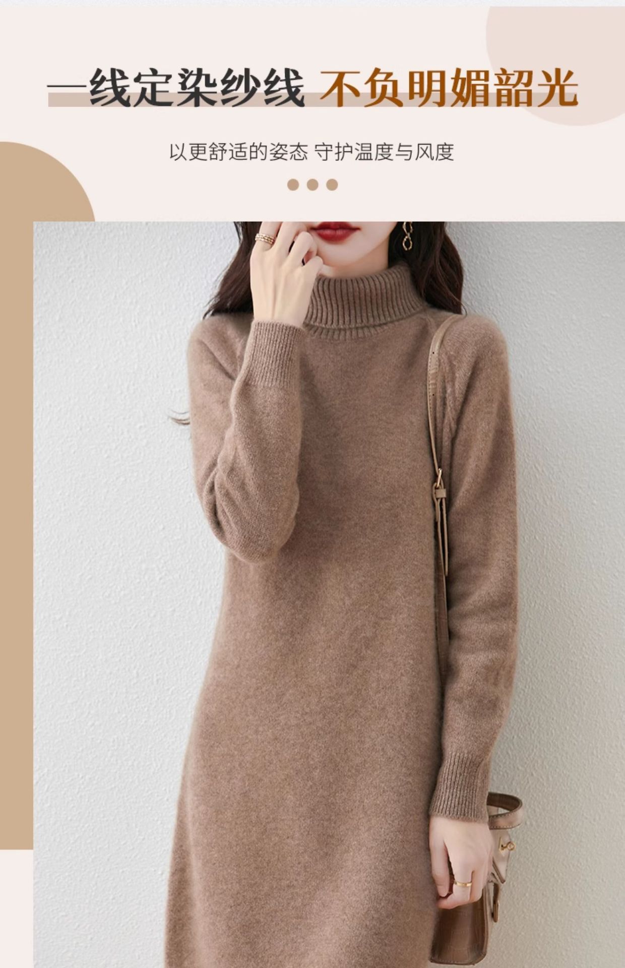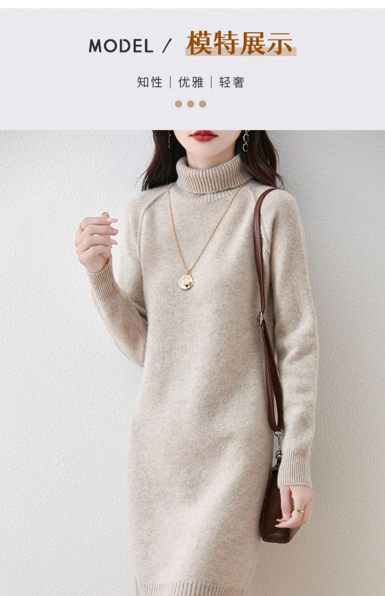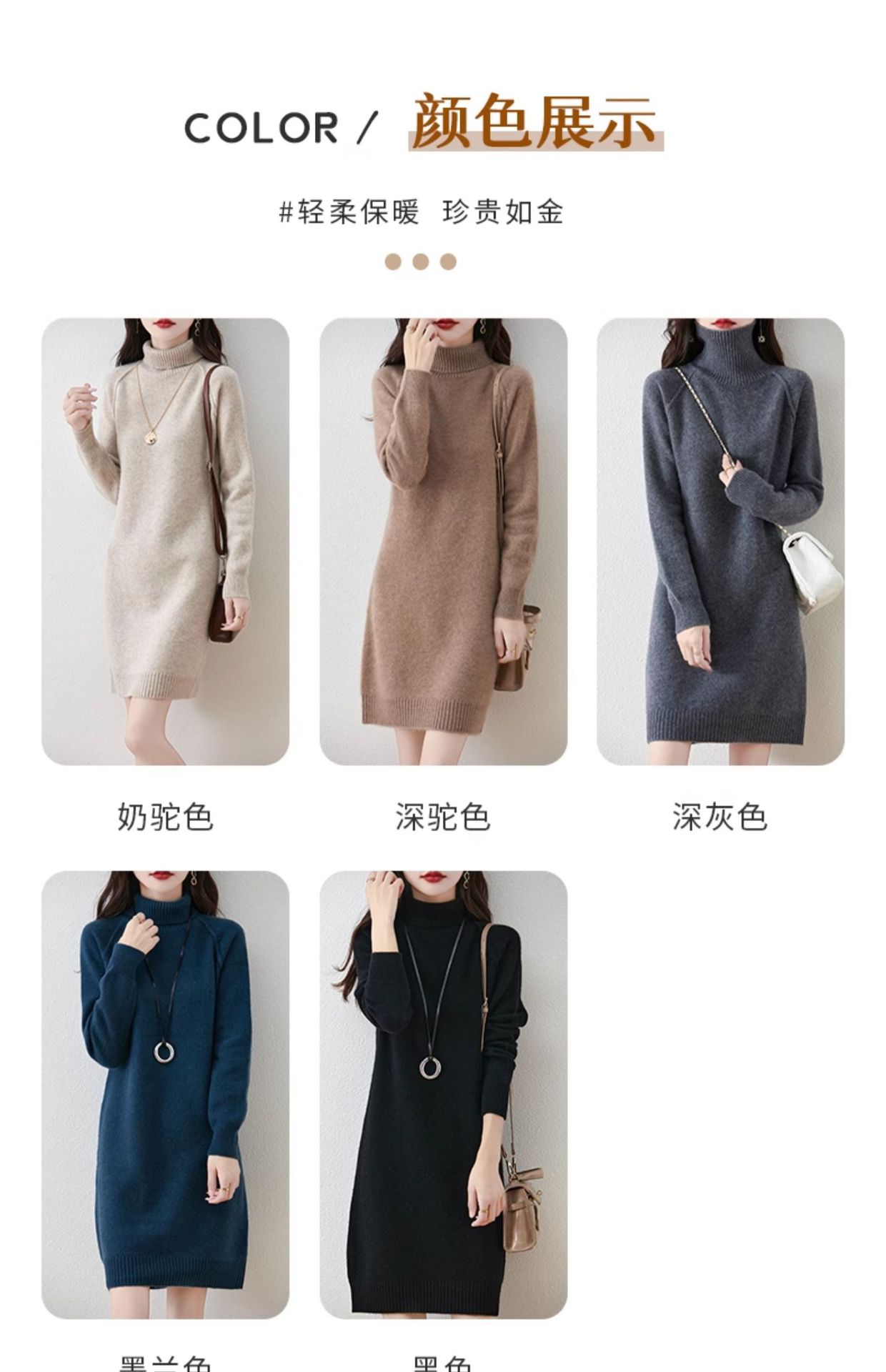 가을, 겨울 두꺼운 솔리드 컬러 드레스 게으른 스타일 하이 라펠 여성 니트 중간 길이 느슨한 라글란 슬리브 스웨터 드레스스토어 가기