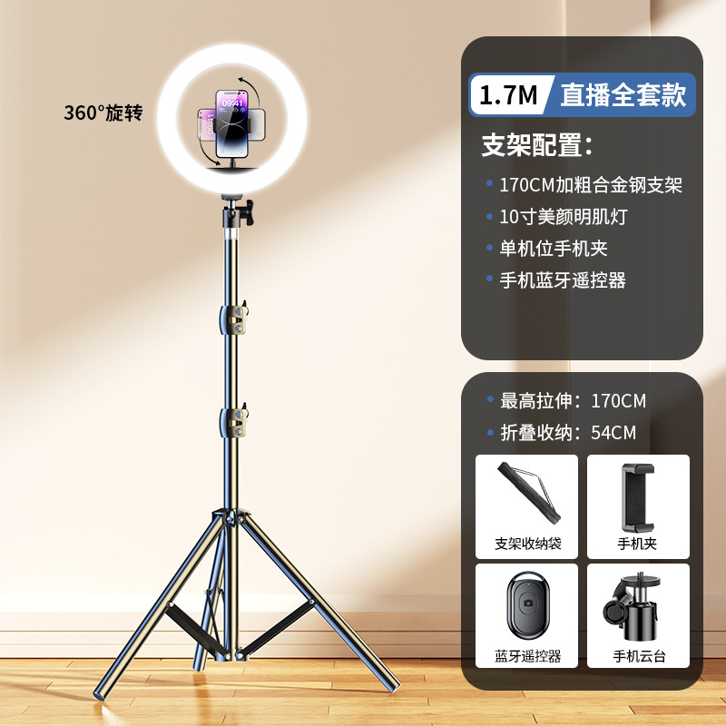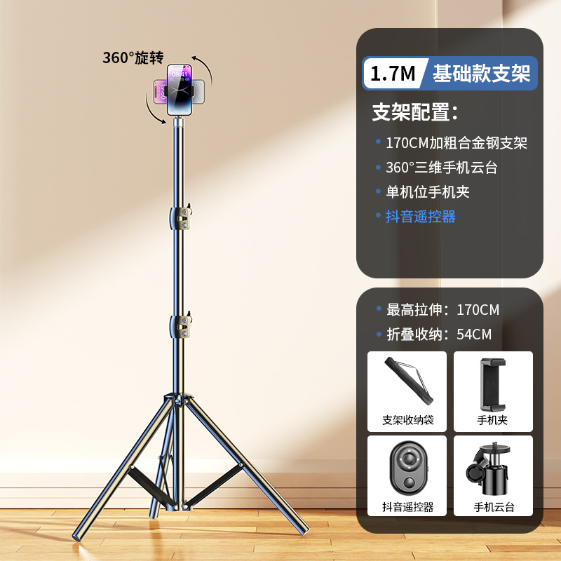 • 1.7m [업그레이드된 합금 브래킷] + [Douyin 리모컨] 단일 카메라 + 보관 가방