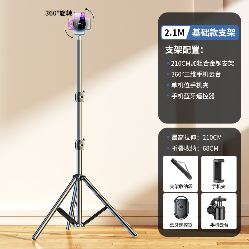 • 2.1m [업그레이드된 합금 브래킷] + [Douyin 리모컨] 단일 카메라 + 보관 가방