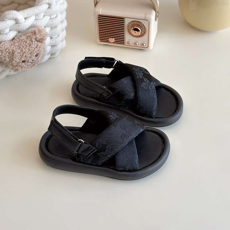 여자 패션 민족 스타일 오픈 발가락 로마 샌들 2025 새로운 여름 어린이 부드러운 밑창 크로스 스트랩 캐주얼 신발