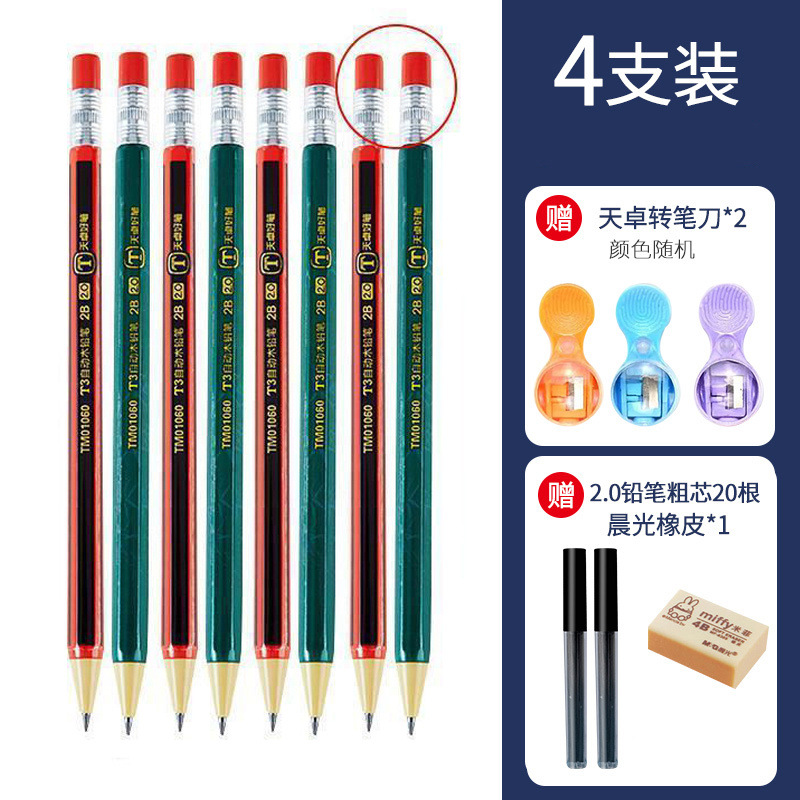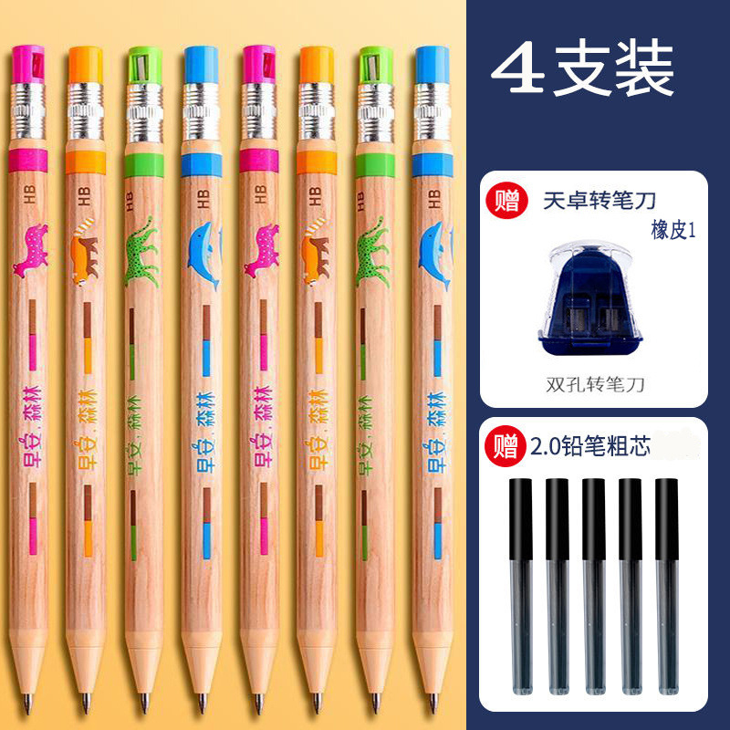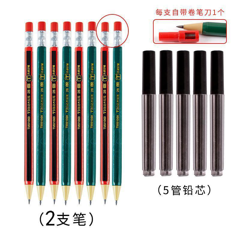 2B 자동 연필 2.0mm 코어 리필 프레스형 초등학생이 연속으로 쓰는 나무 연필 2mm 리필 Amazon