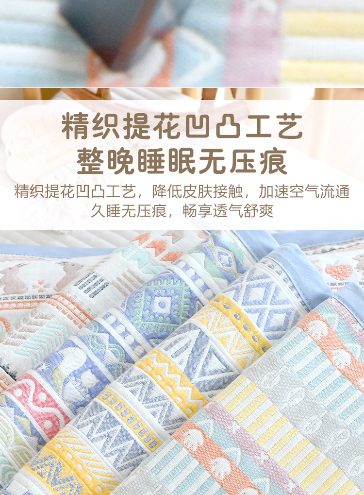 六层纱布提花工艺纹理,触感柔软不摩擦肌肤