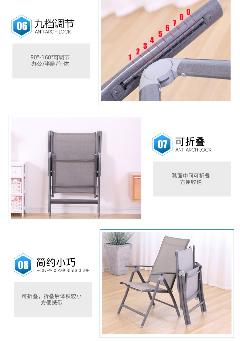 • 조절 가능한 요추 베개가 포함된 전체 강철 프레임 접이식 D 의자