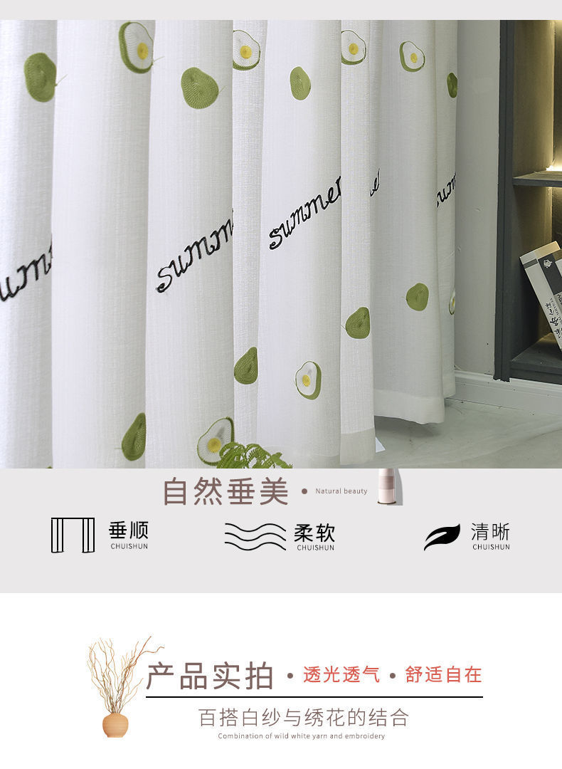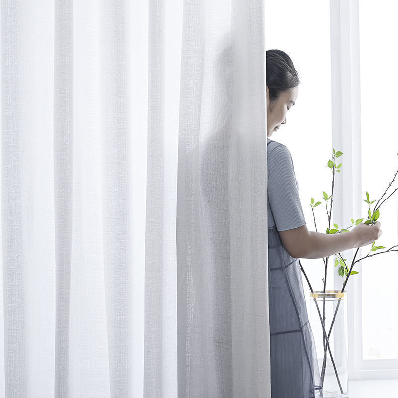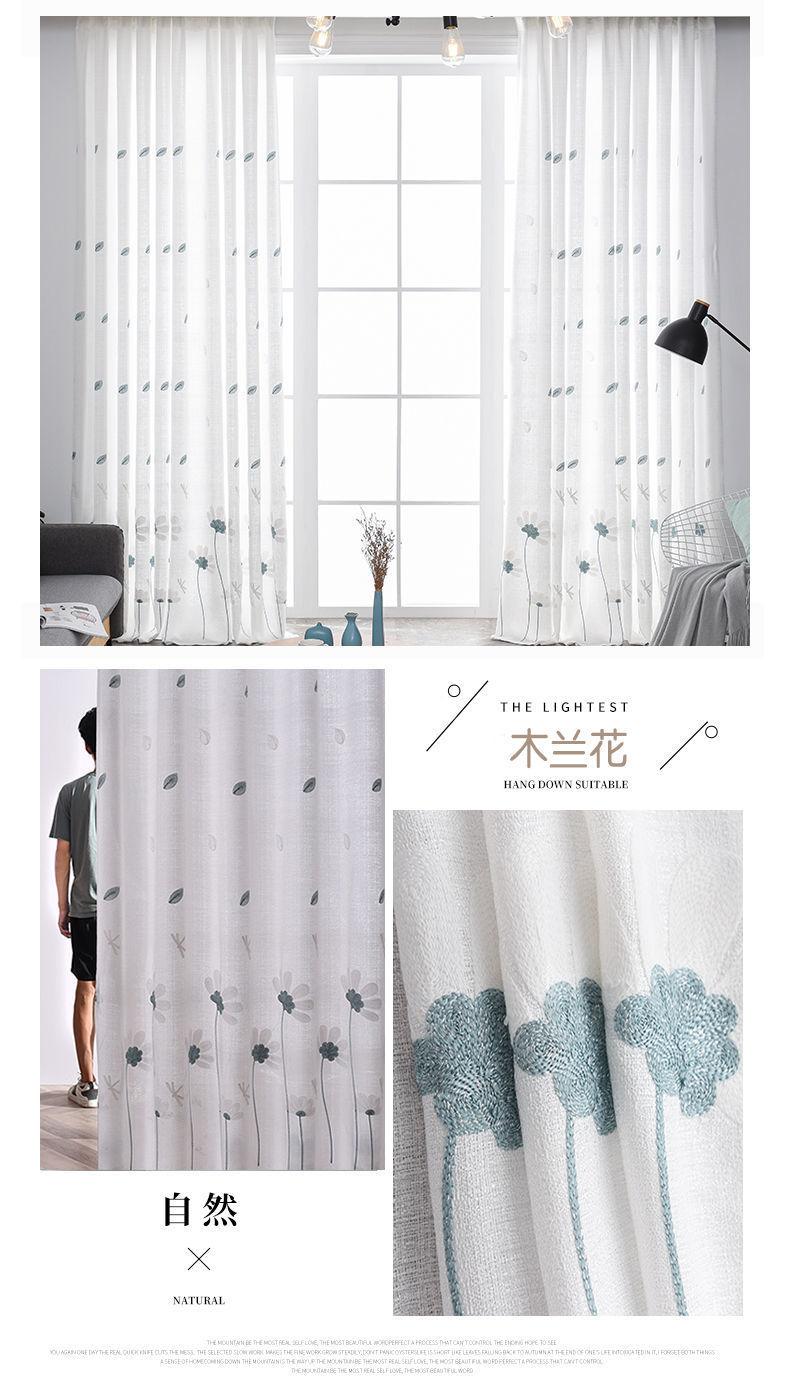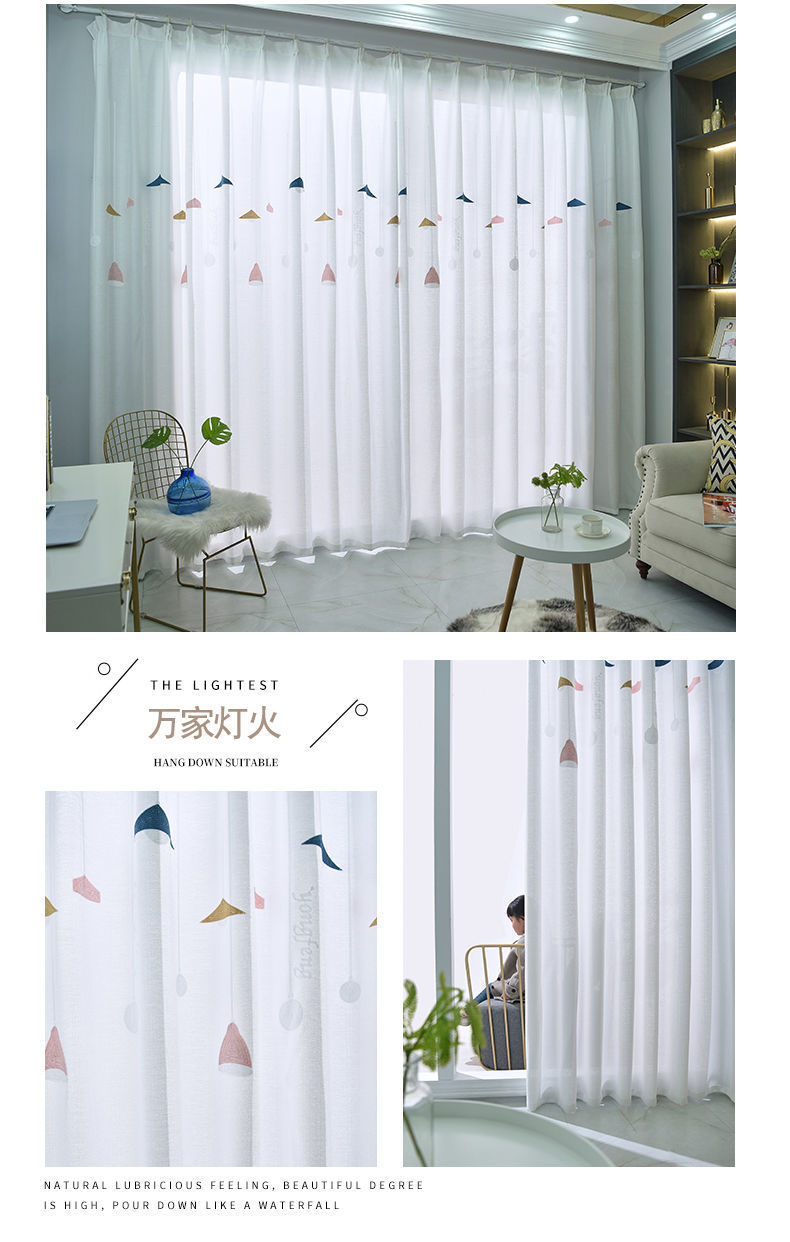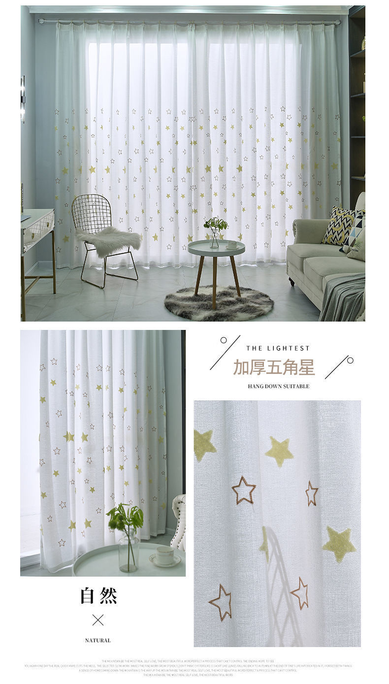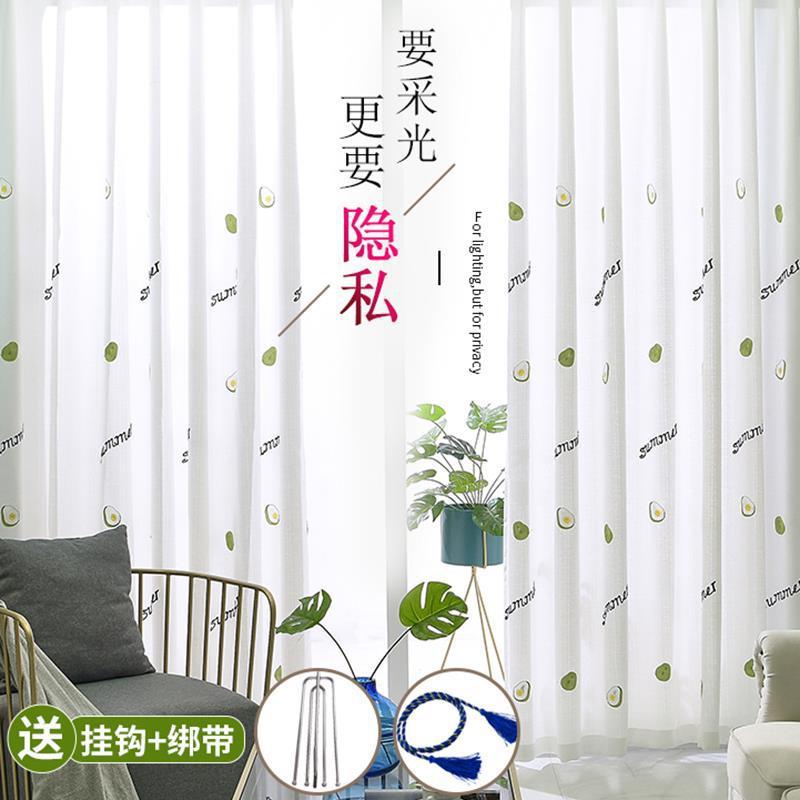 커튼 거즈 커튼은 빛을 투과하지 않고 불투명하며 자체 접착식 두꺼운 흰색 거즈 간단한 거즈 침실 거실 발코니 자수 벌크창 거즈스토어 가기