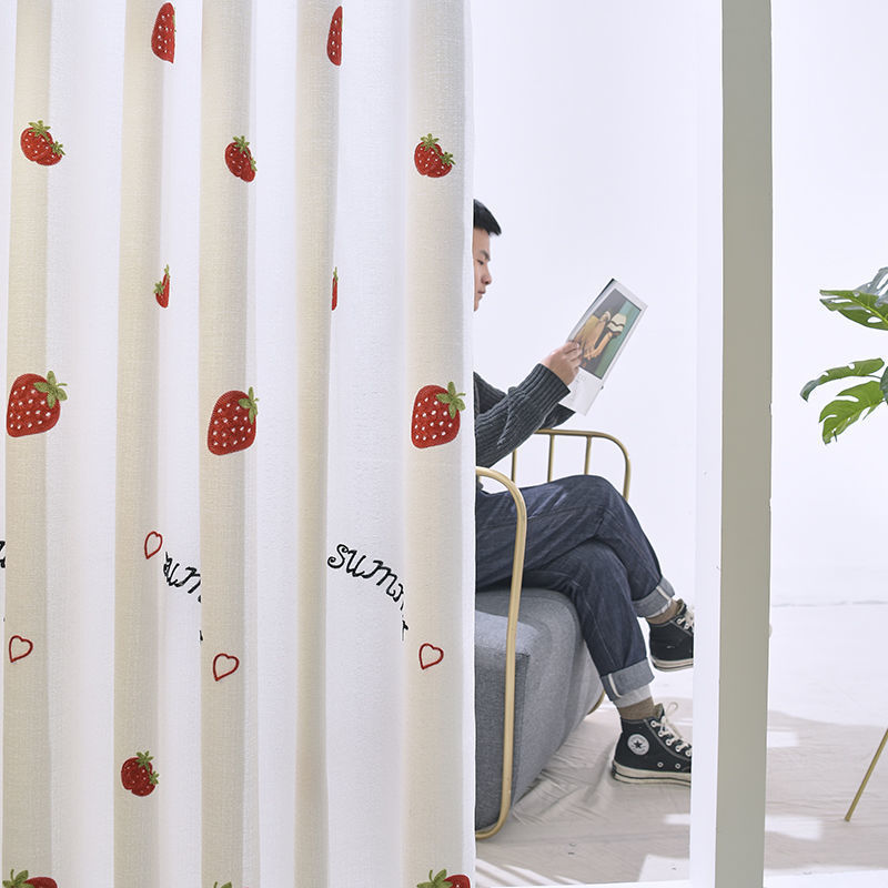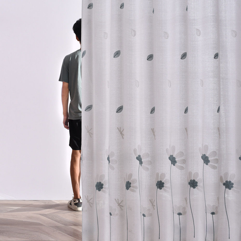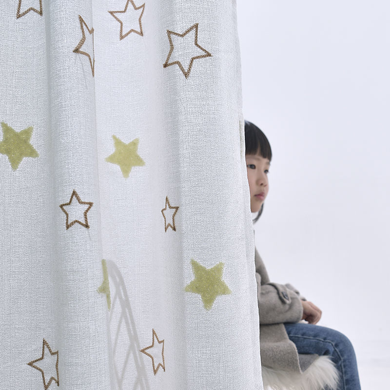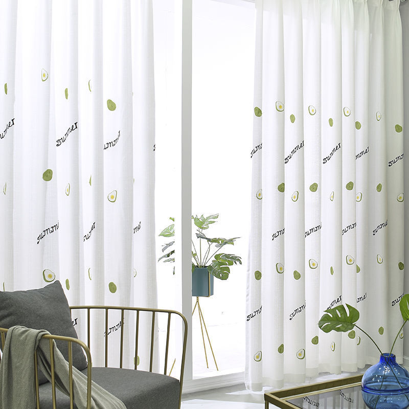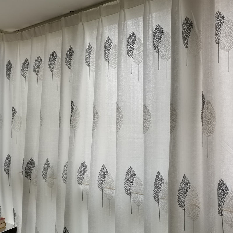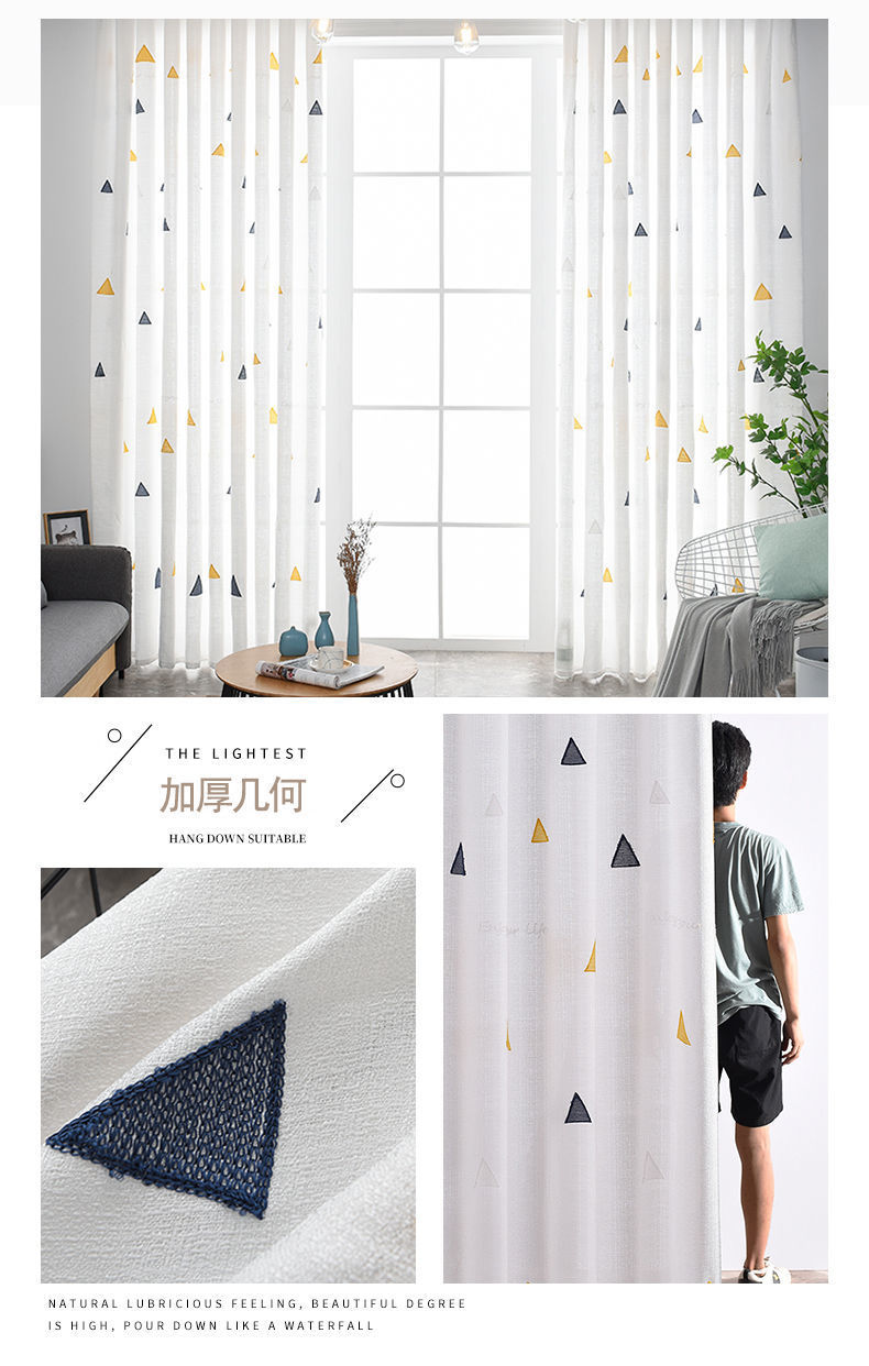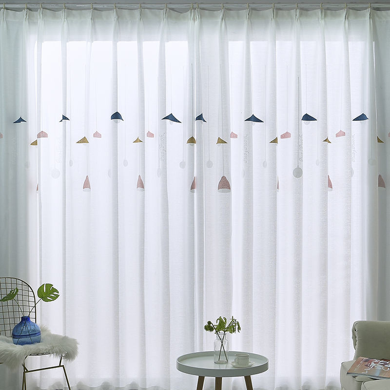 커튼 거즈 커튼은 빛을 투과하지 않고 불투명하며 자체 접착식 두꺼운 흰색 거즈 간단한 거즈 침실 거실 발코니 자수 벌크창 거즈스토어 가기