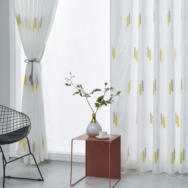 커튼 거즈 커튼은 빛을 투과하지 않고 불투명하며 자체 접착식 두꺼운 흰색 거즈 간단한 거즈 침실 거실 발코니 자수 벌크창 거즈