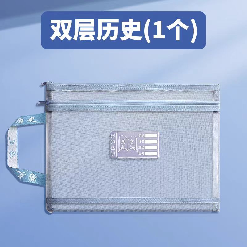 학생 과목 분류 파일 가방 휴대용 지퍼가 달린 더블 레이어 대용량 투명 메쉬 초등학교 교과서 보관함스토어 가기