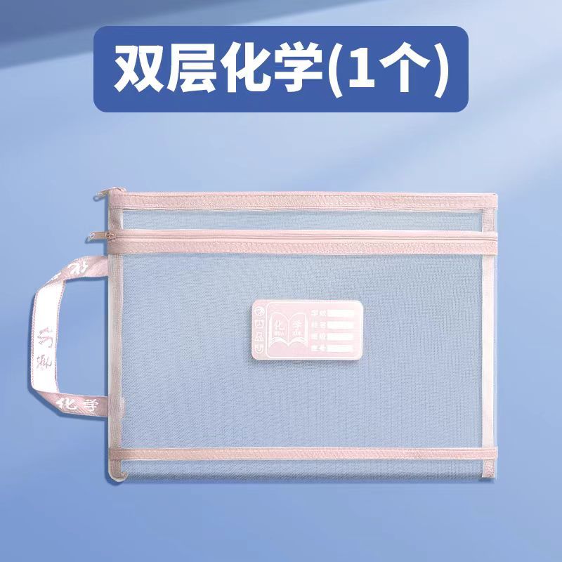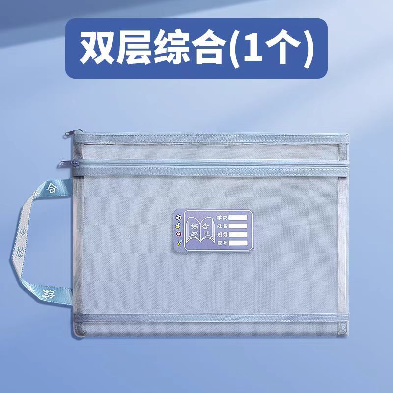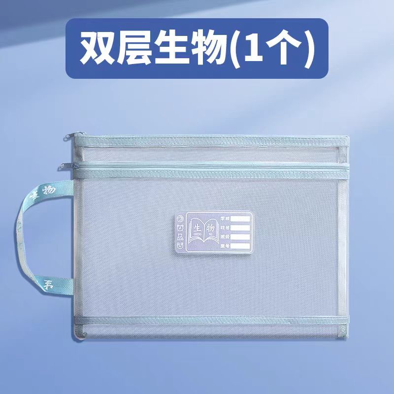 학생 과목 분류 파일 가방 휴대용 지퍼가 달린 더블 레이어 대용량 투명 메쉬 초등학교 교과서 보관함