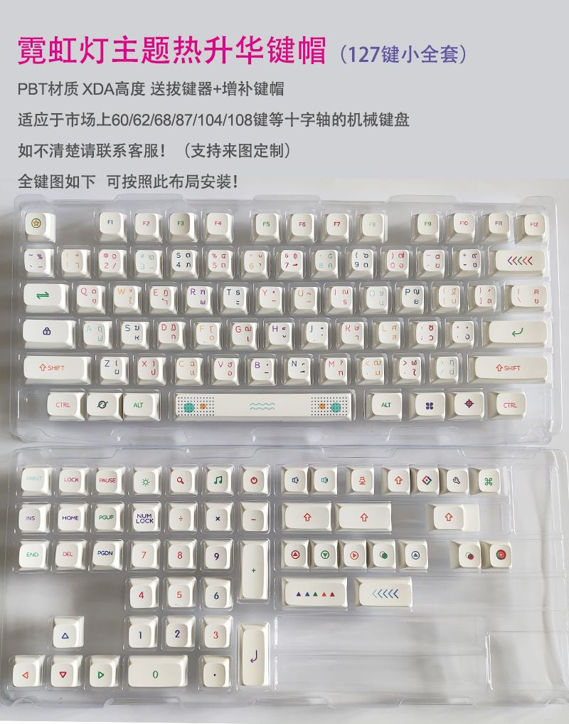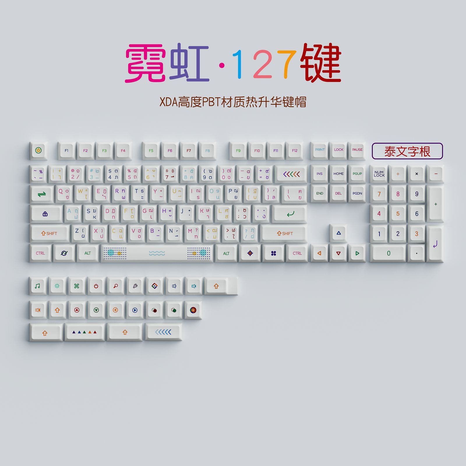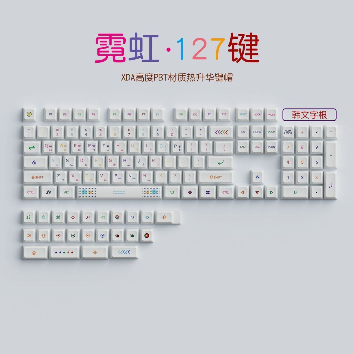 공장 직접 판매 127 키 네온 키캡 XDA 높이 게임 기계식 키보드 키캡 러시아어 한국어 음성스토어 가기