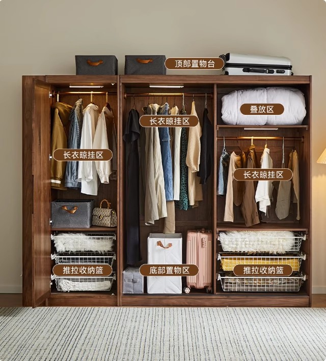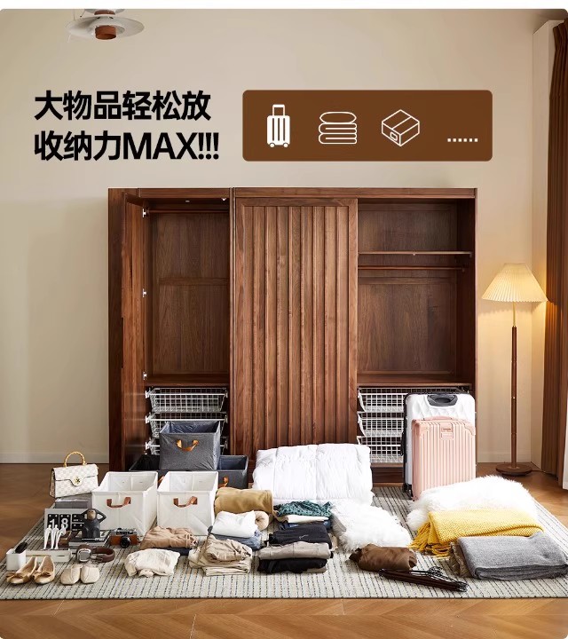 북미 검은 호두 옷장 조합 북유럽 단단한 나무 체리 나무 침실 수납 옷장 일본식 통나무 옷장스토어 가기