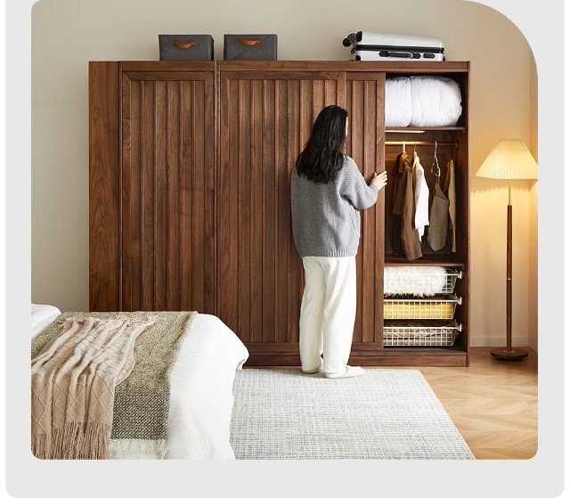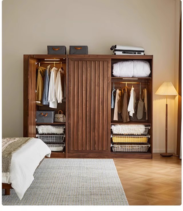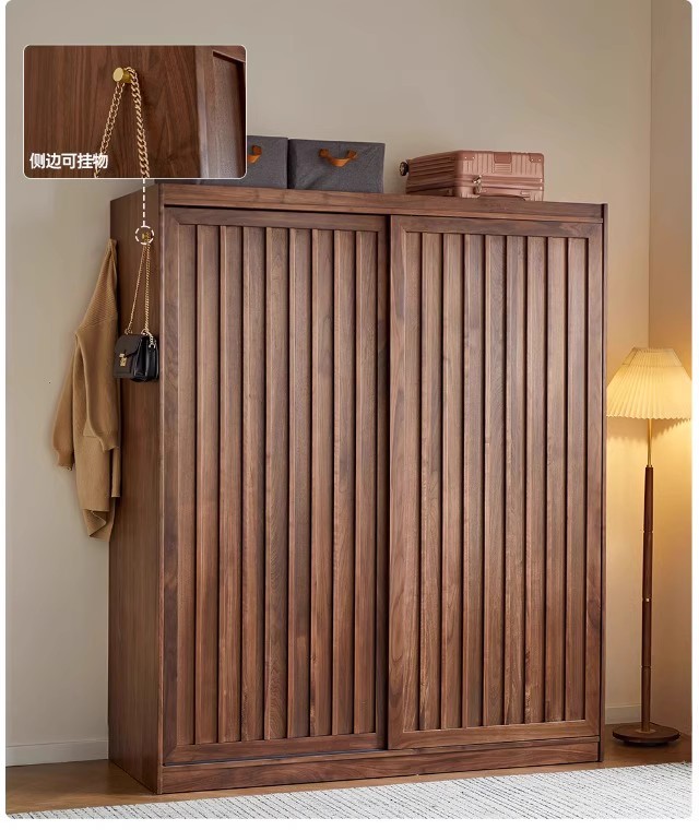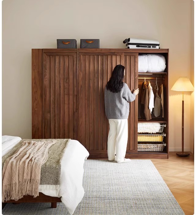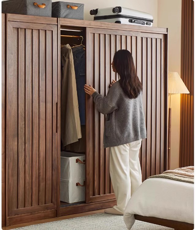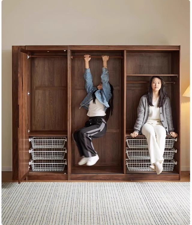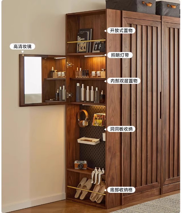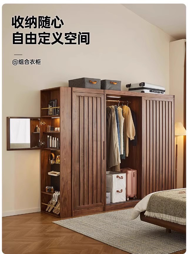 북미 검은 호두 옷장 조합 북유럽 단단한 나무 체리 나무 침실 수납 옷장 일본식 통나무 옷장