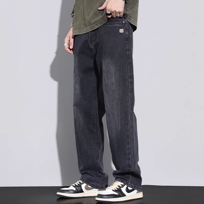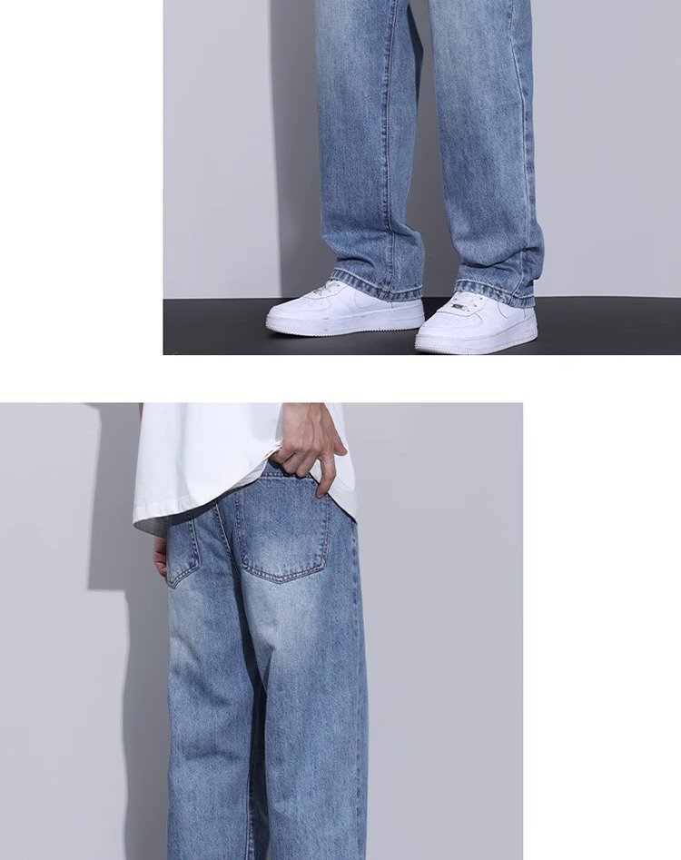 2025 봄, 가을 새로운 느슨한 스트레이트 워시 청바지 남성 트렌디 아메리칸 레트로 와이드 레그 루즈 캐주얼 바지스토어 가기