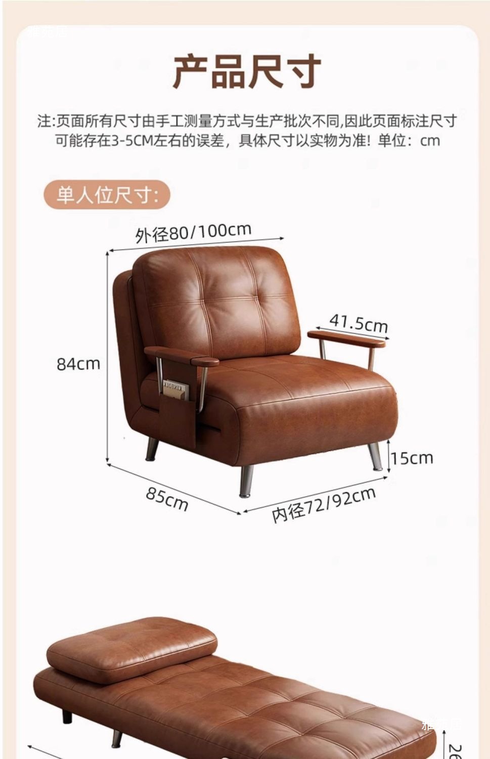 • 등받이 5단계 조절(오일왁스 가죽, 부드러운 라텍스) 1.5m 소파베드