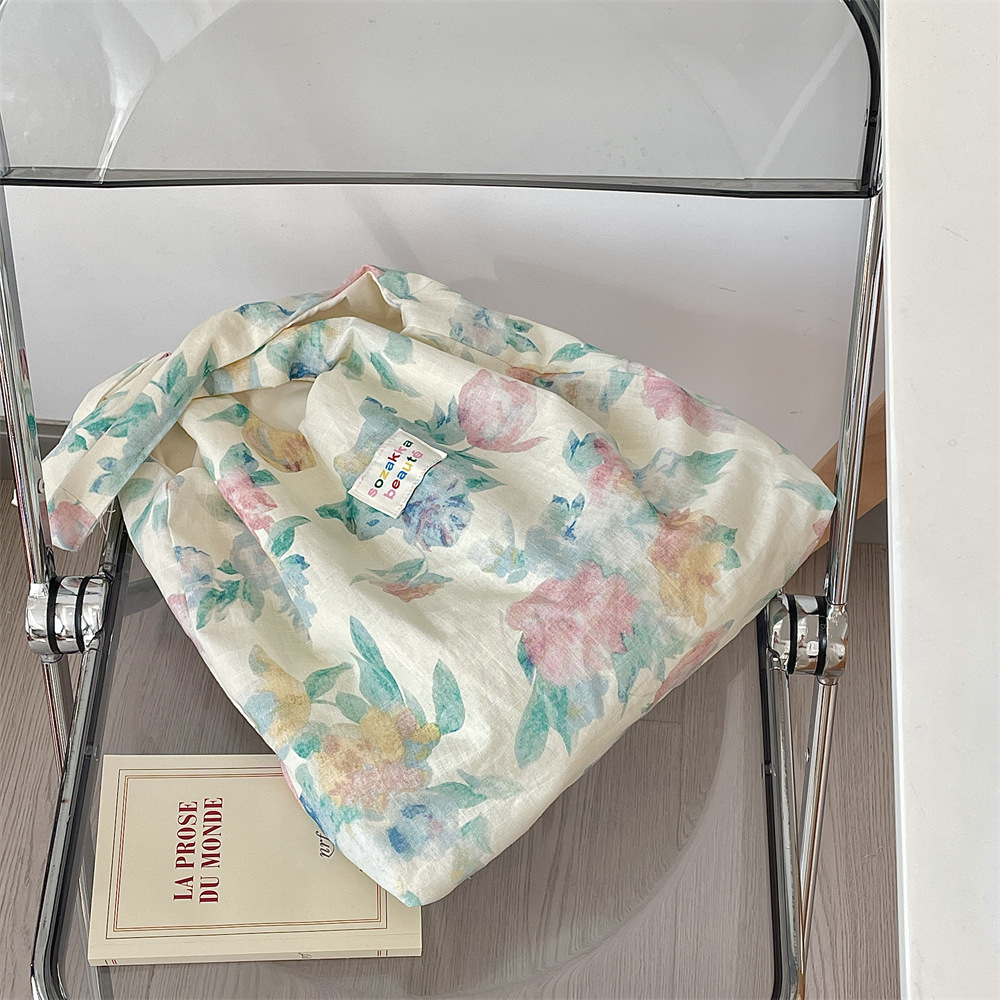 5363 여름 리넨 꽃 레이스 숄더 백 여성 작은 신선한 조끼 가방 손 가방 어깨 접합 천 가방스토어 가기