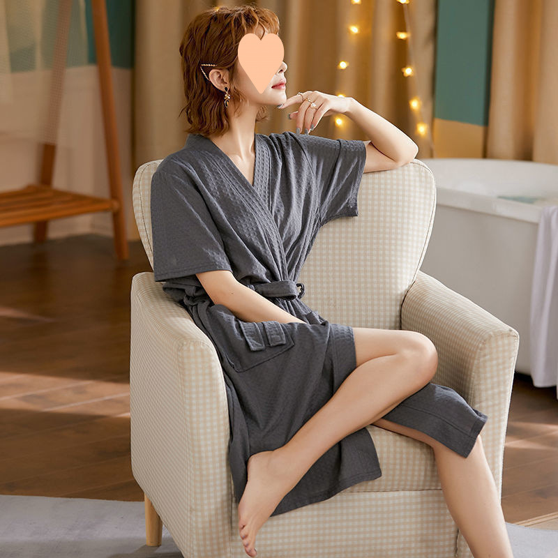 2025 여름 얇은 잠옷 루즈 와플 남성 및 여성 목욕 가운 호텔 목욕 가운 커플은 여성용 잠옷 외부에 착용할 수 있습니다스토어 가기