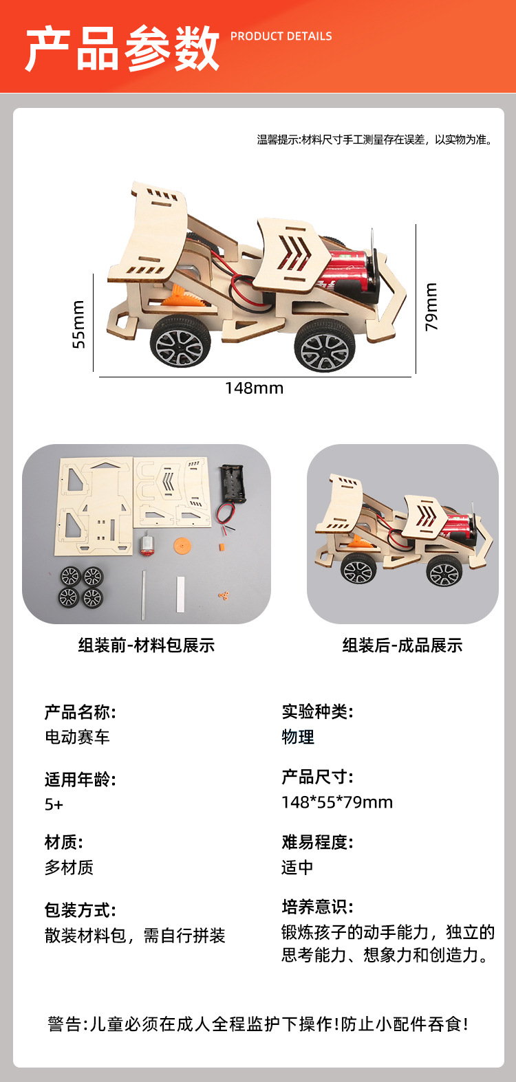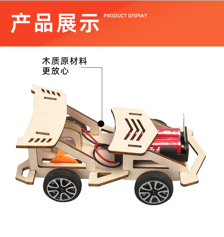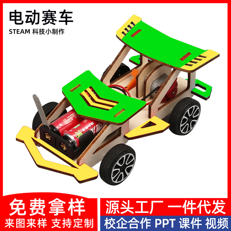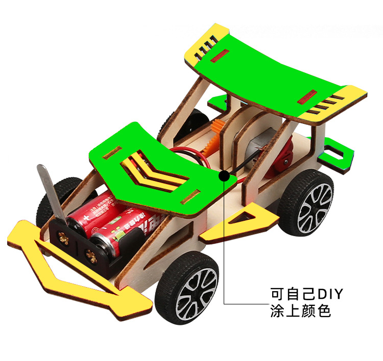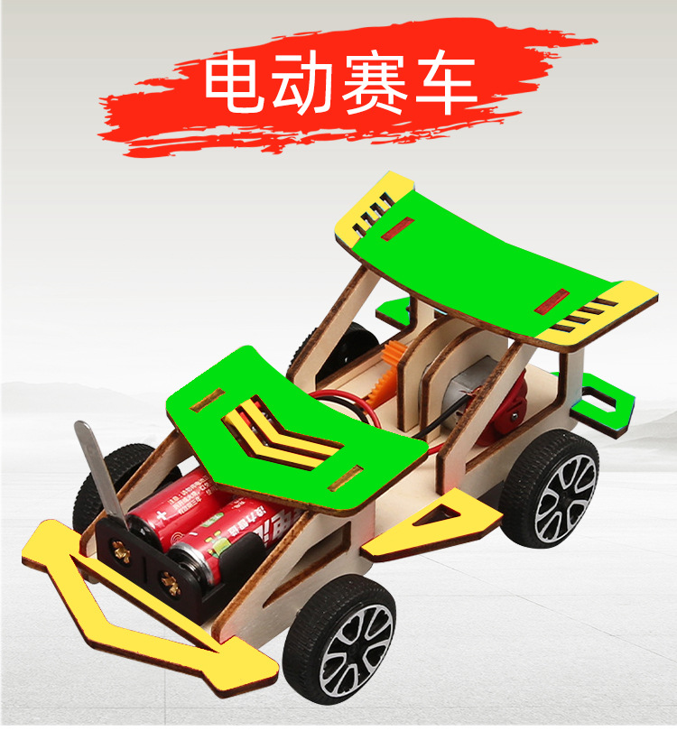 창의적인 전기 나무 경주용 자동차 기술 소규모 생산 초등학생이 발명한 조립 과학 실험 장난감 수제 재료