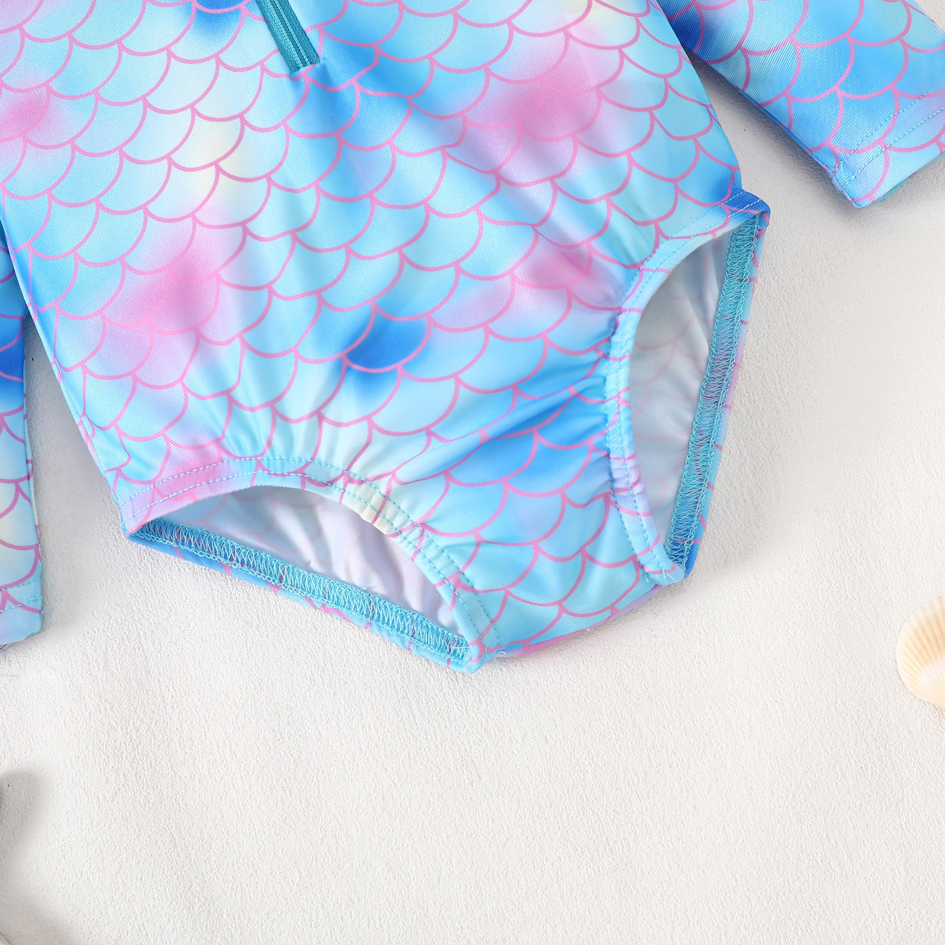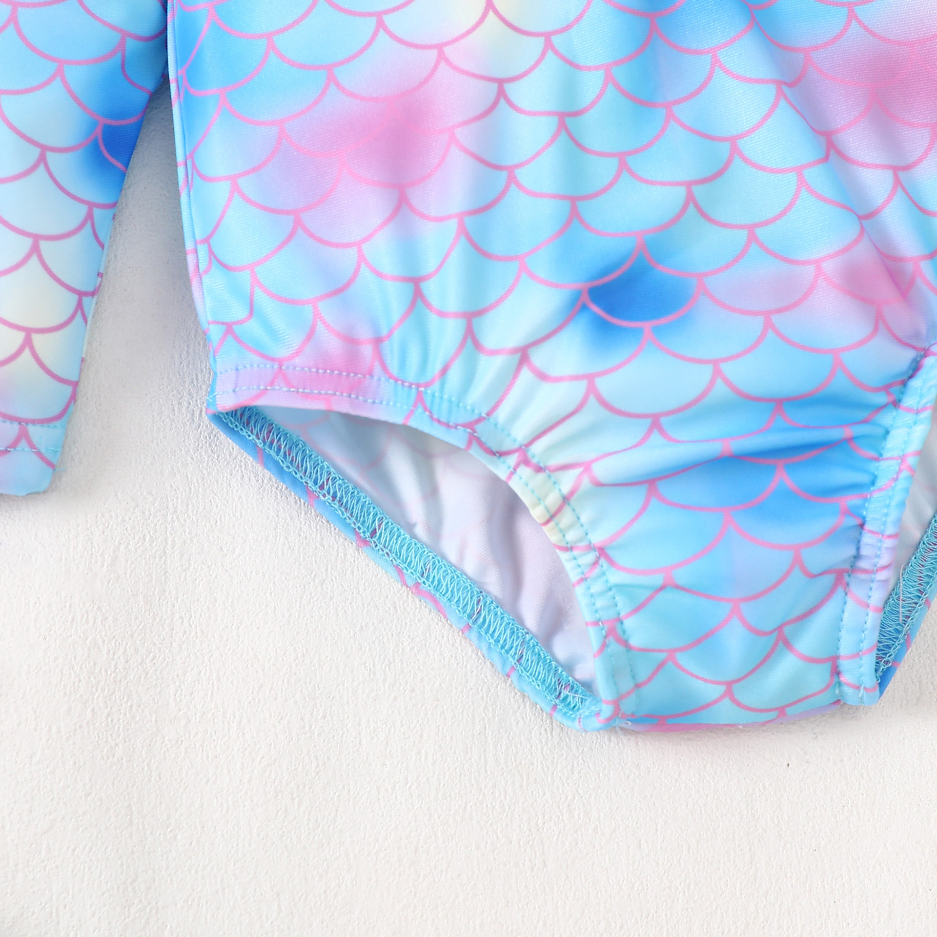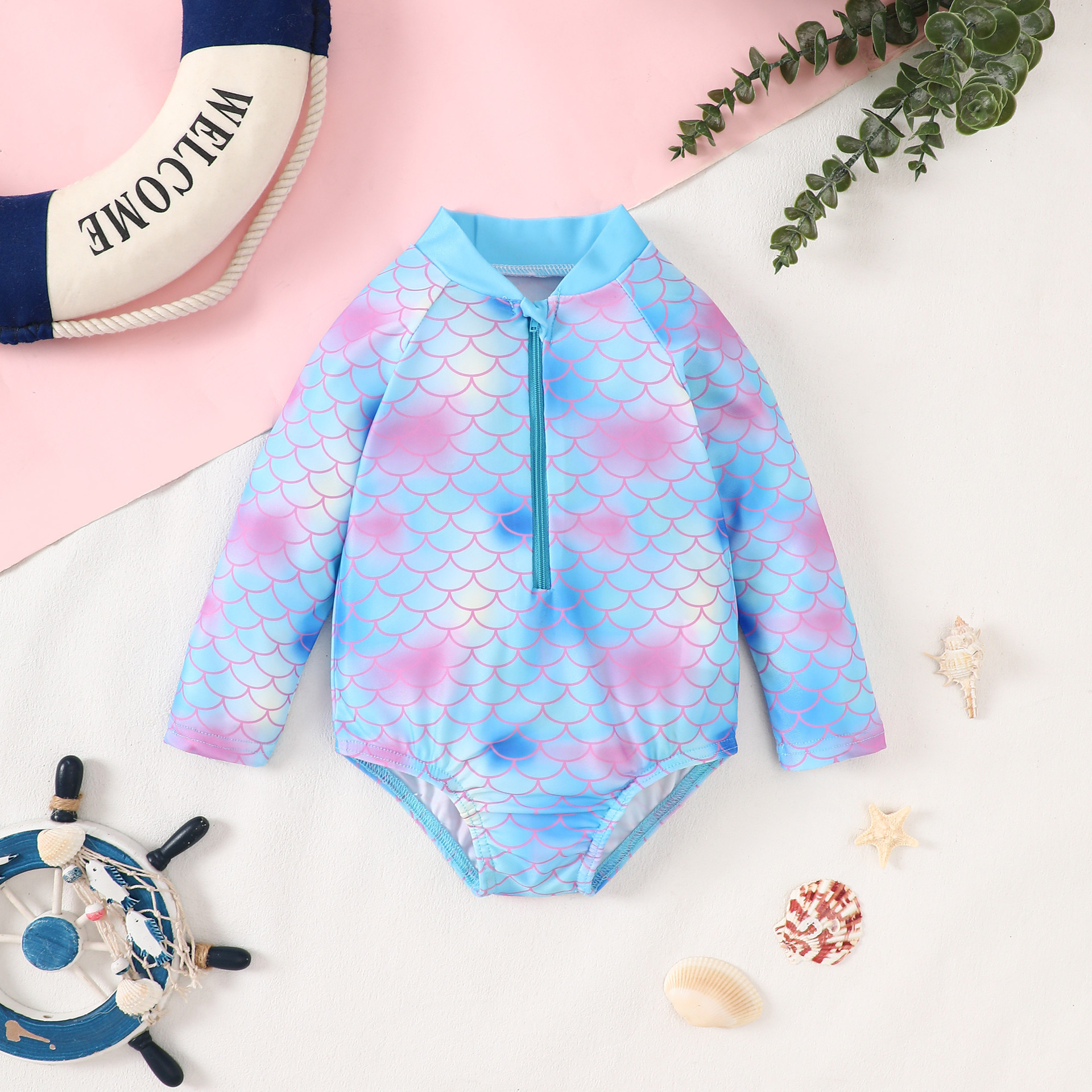 새로운 프린트 긴팔 자외선 차단 보수적인 배 커버 여아 수영복 여름 삼각 팩 수영복 원피스 수영복