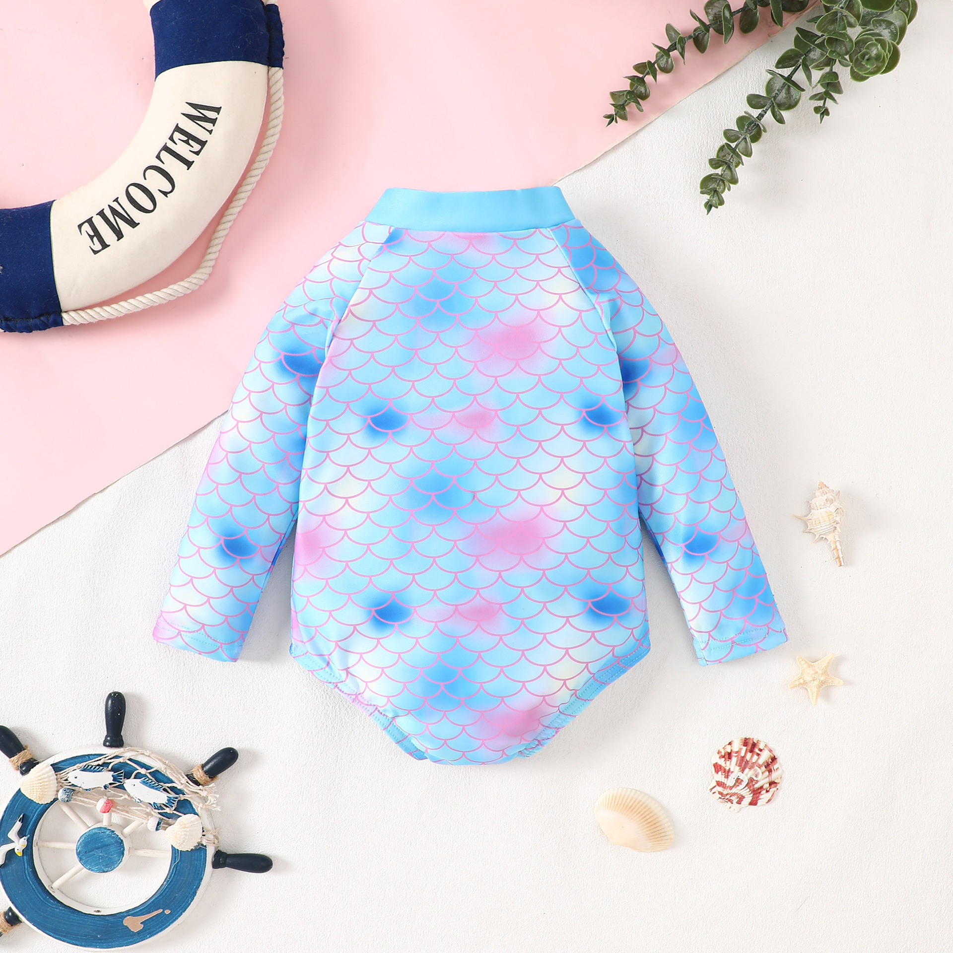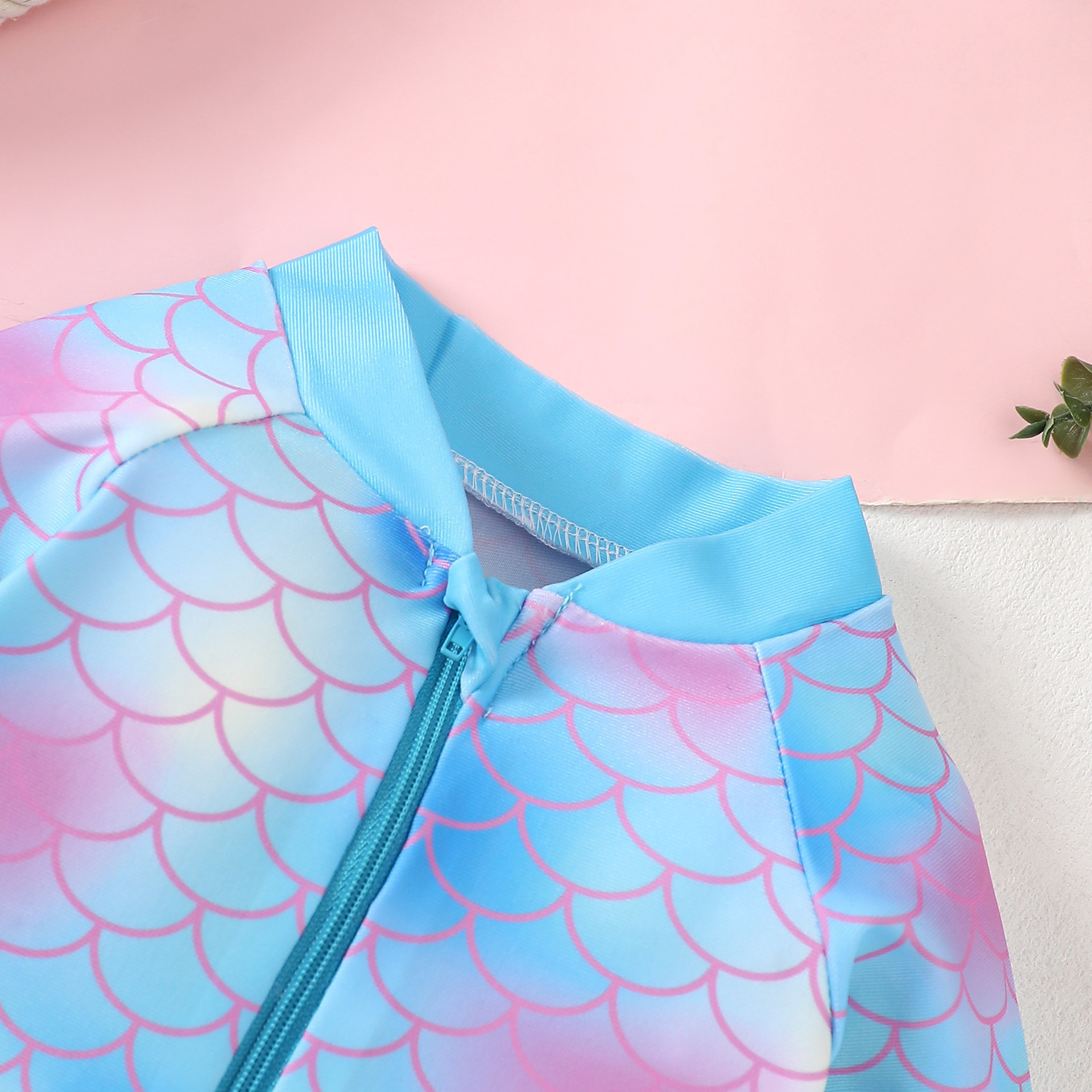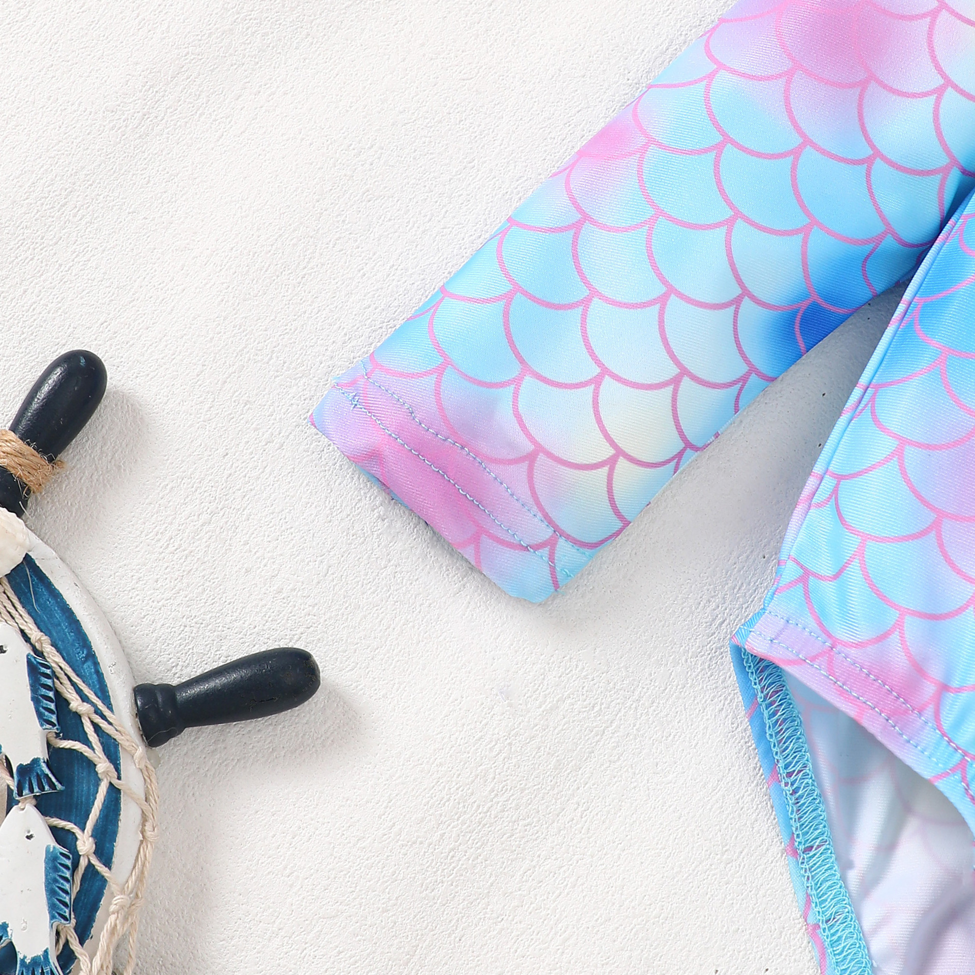 새로운 프린트 긴팔 자외선 차단 보수적인 배 커버 여아 수영복 여름 삼각 팩 수영복 원피스 수영복
