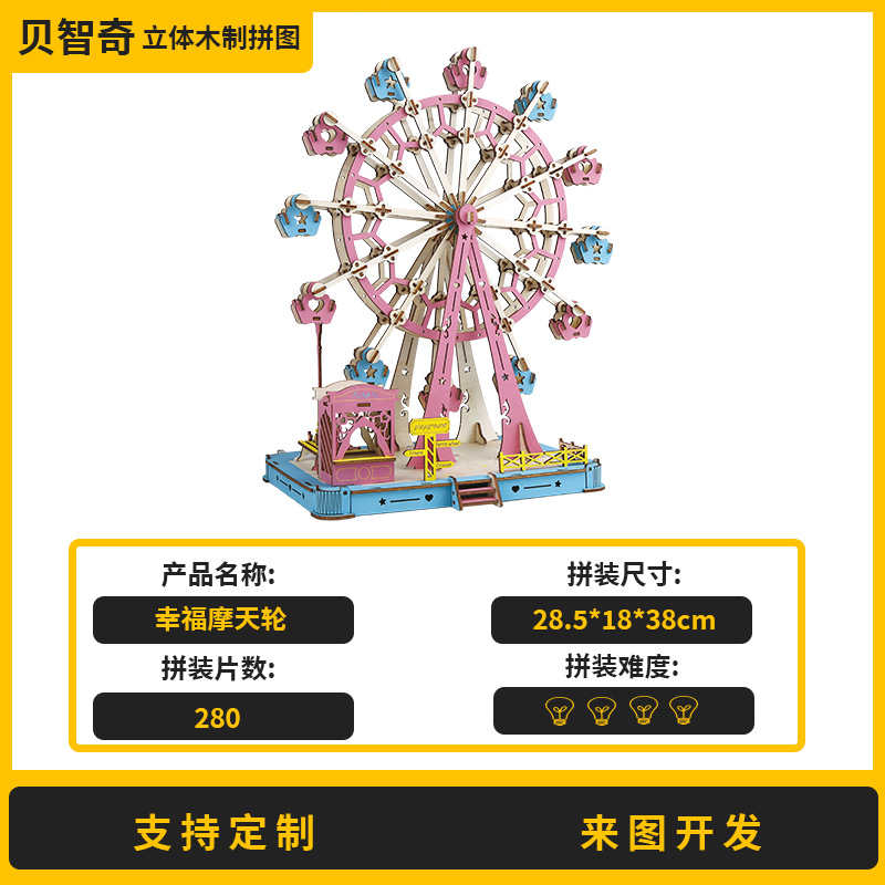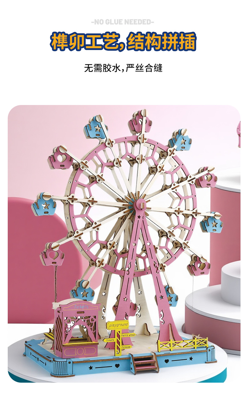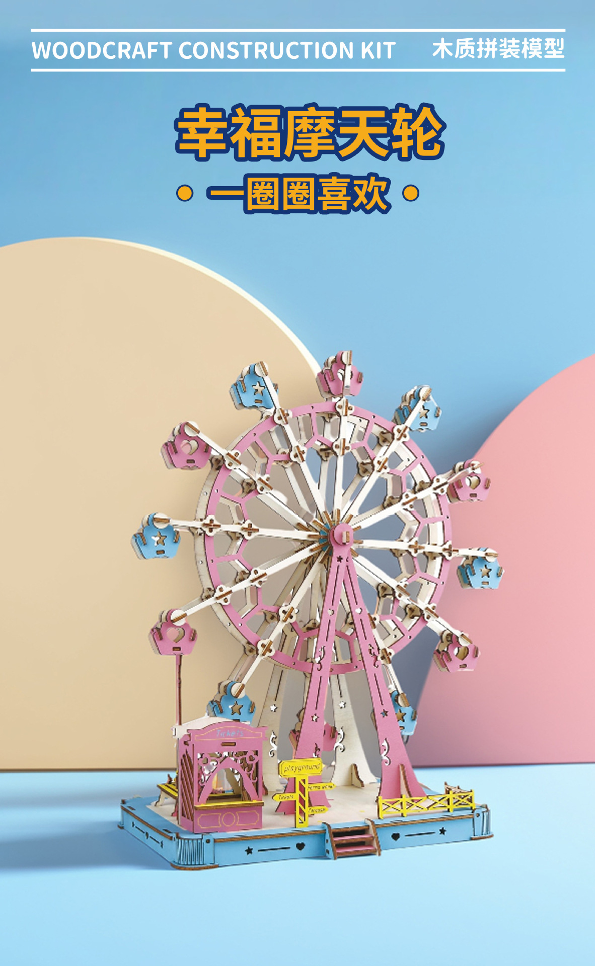 대관람차 나무 입체 퍼즐 장난감 3d 퍼즐 축음기 크로스보더 diy 빌딩 블록 모델 목마 성스토어 가기