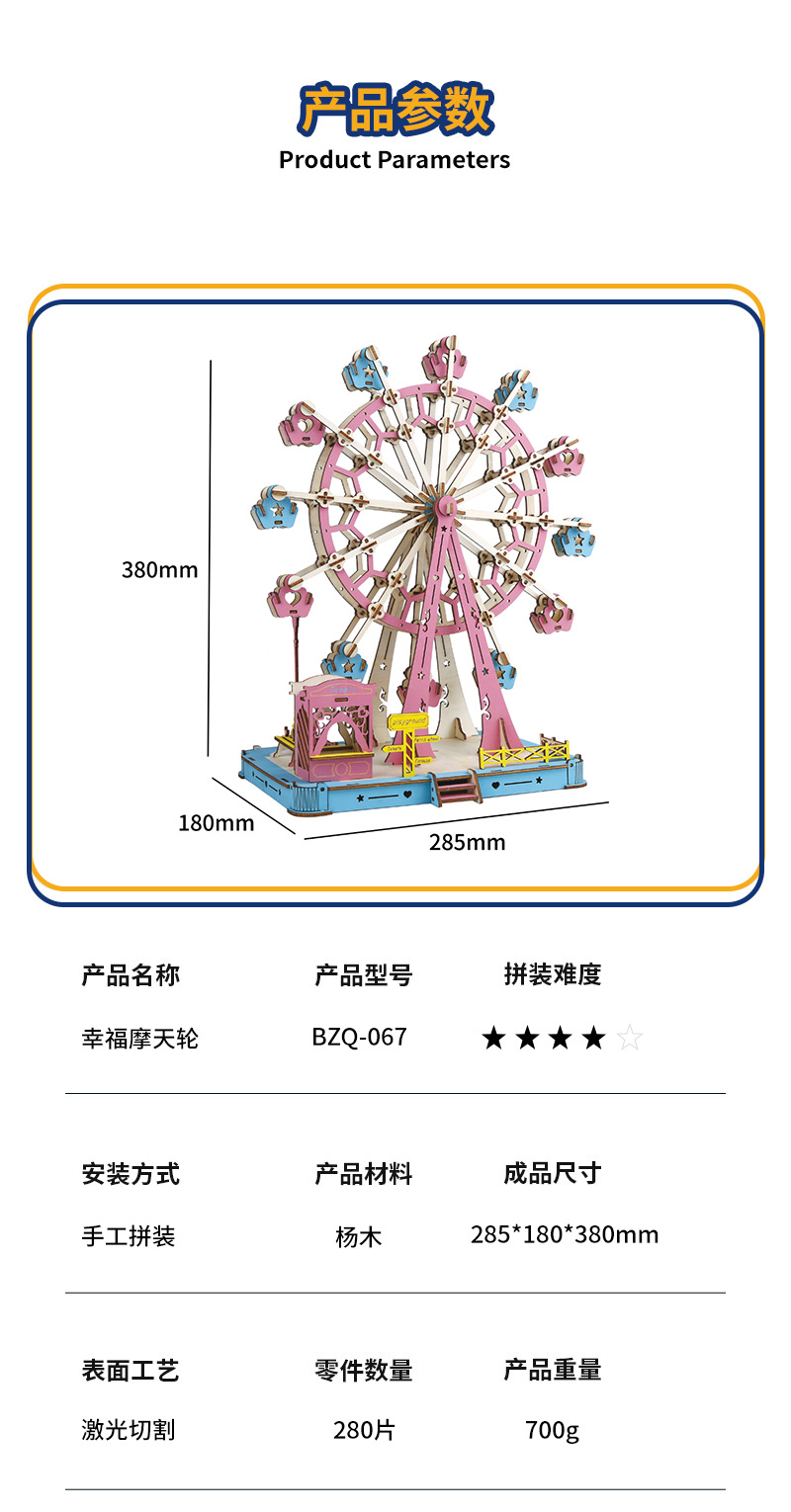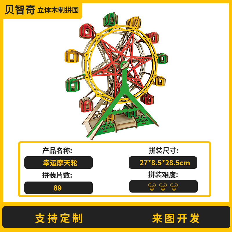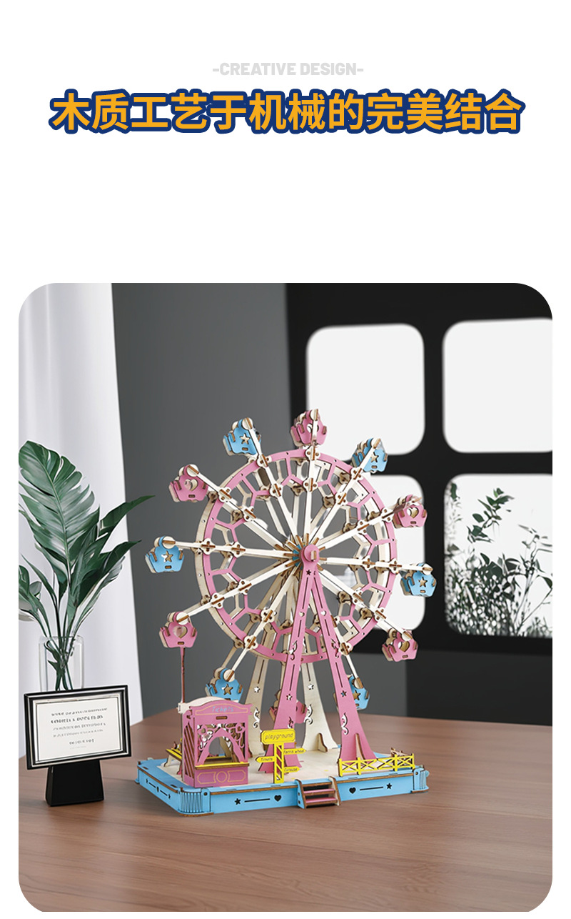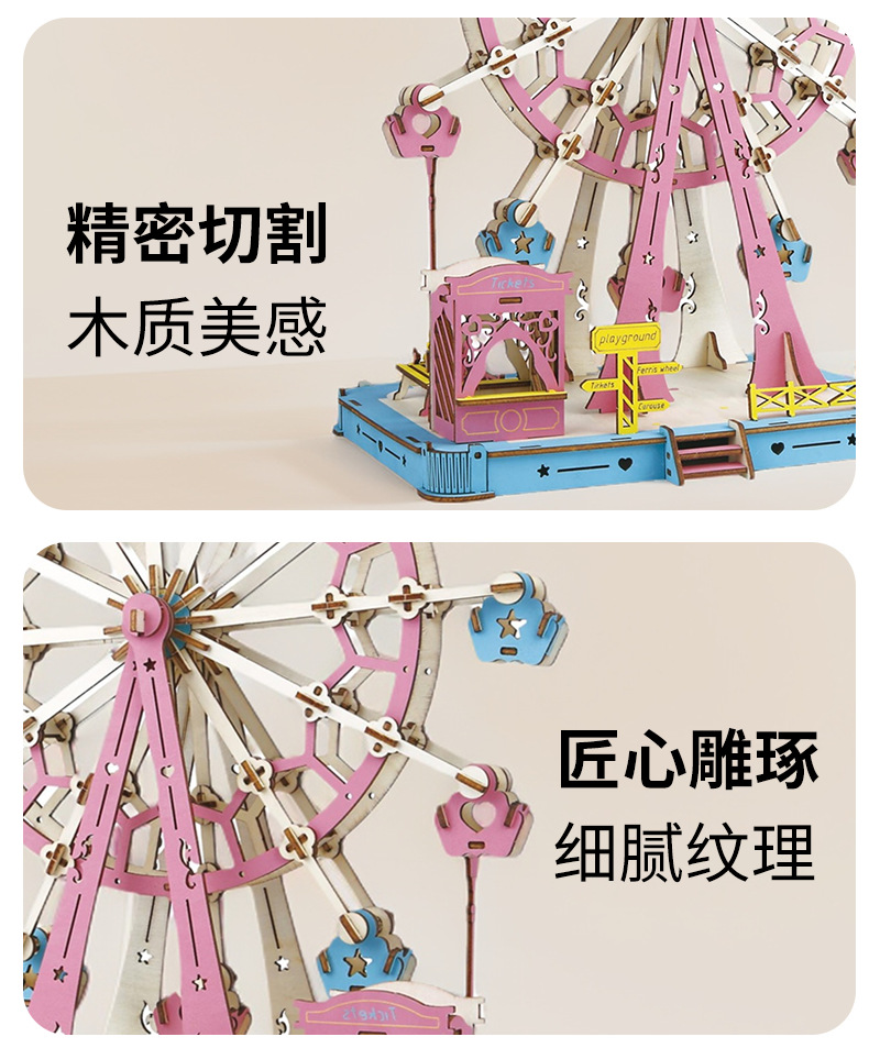 대관람차 나무 입체 퍼즐 장난감 3d 퍼즐 축음기 크로스보더 diy 빌딩 블록 모델 목마 성스토어 가기