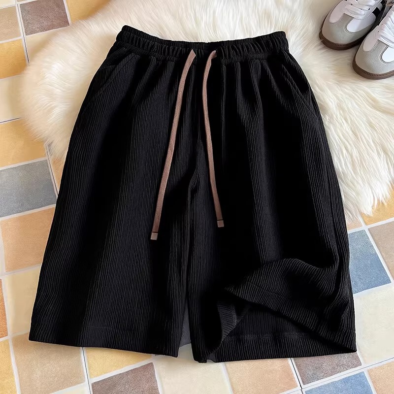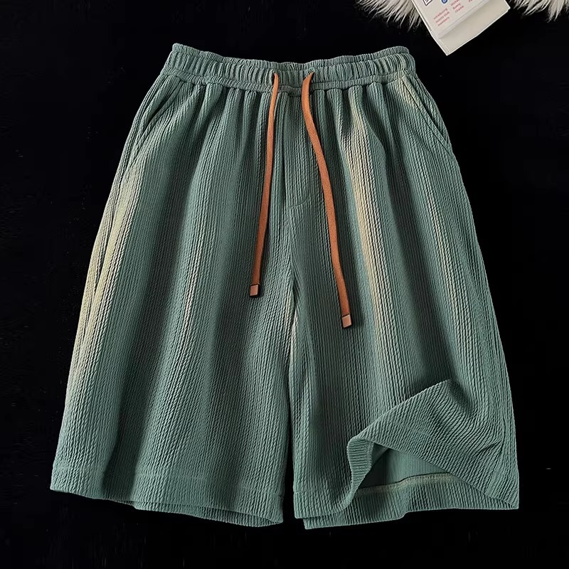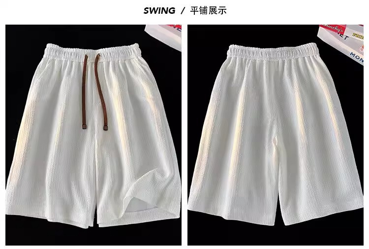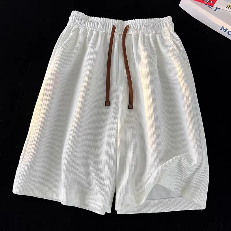 여름 남성용 질감있는 아이스 실크 반바지 새로운 스타일의 시원하고 속건성 5부 바지 미국 트렌디 브랜드 루즈한 스포츠 캐주얼 바지