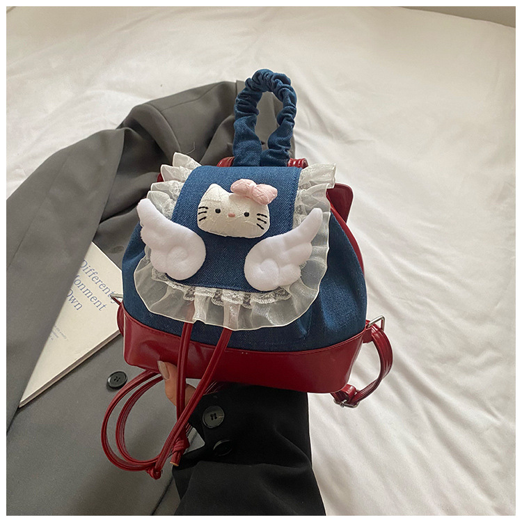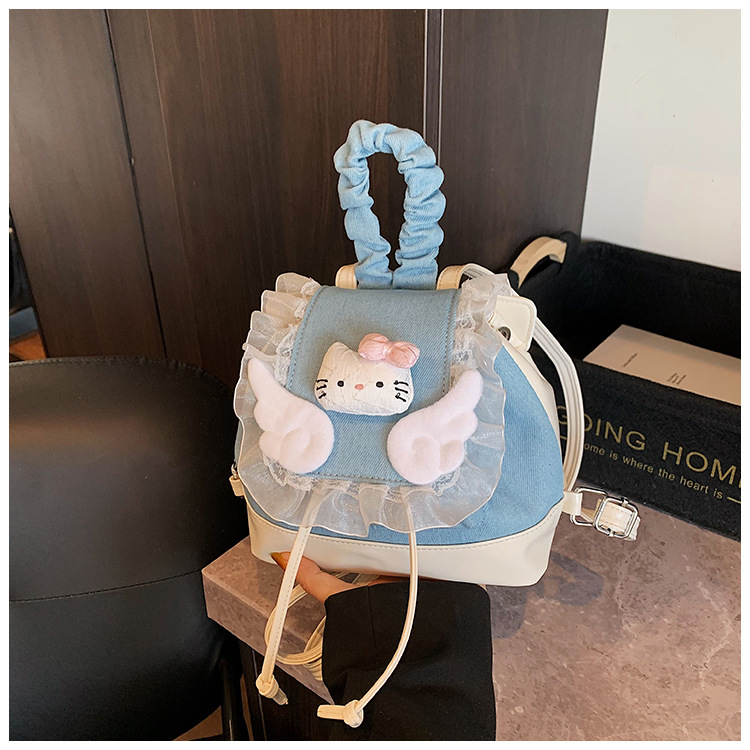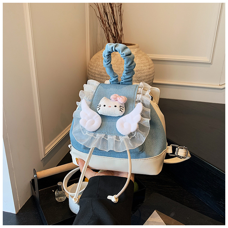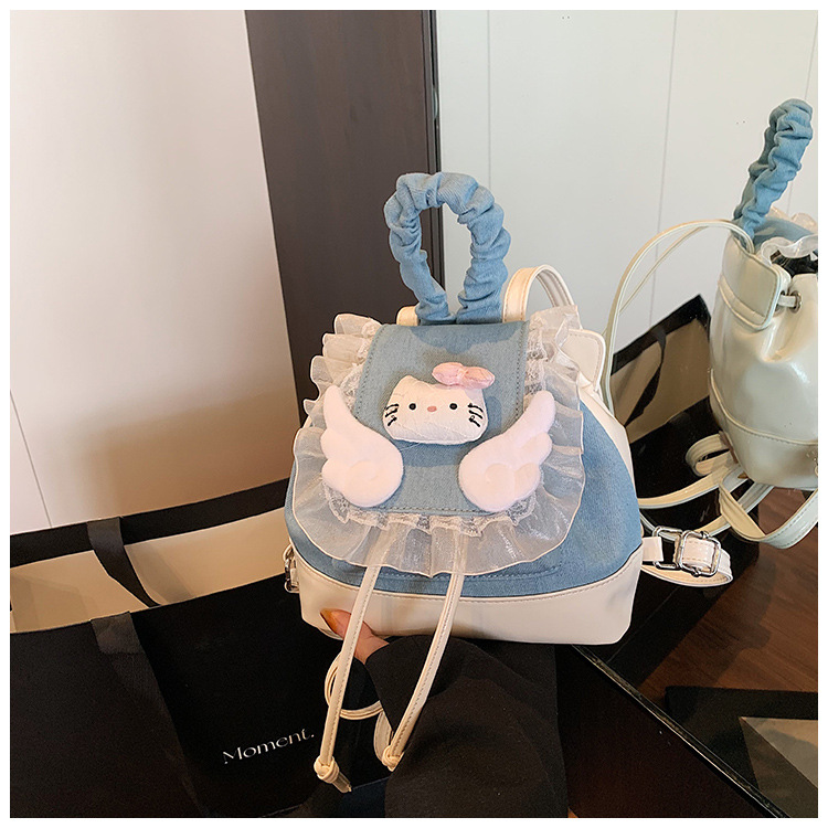 일본 ins 귀여운 레이스 날개 배낭 여성 2025 새로운 키티 고양이 패션 소녀 작은 배낭스토어 가기