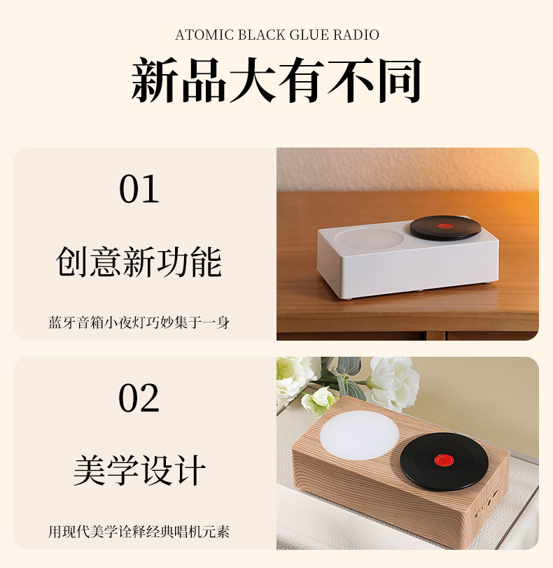 타임 로터리 스피커 원자 램프 레트로 회전 레코드 플레이어 블루투스 스피커 야간 조명 비닐 새로운 크리에이티브