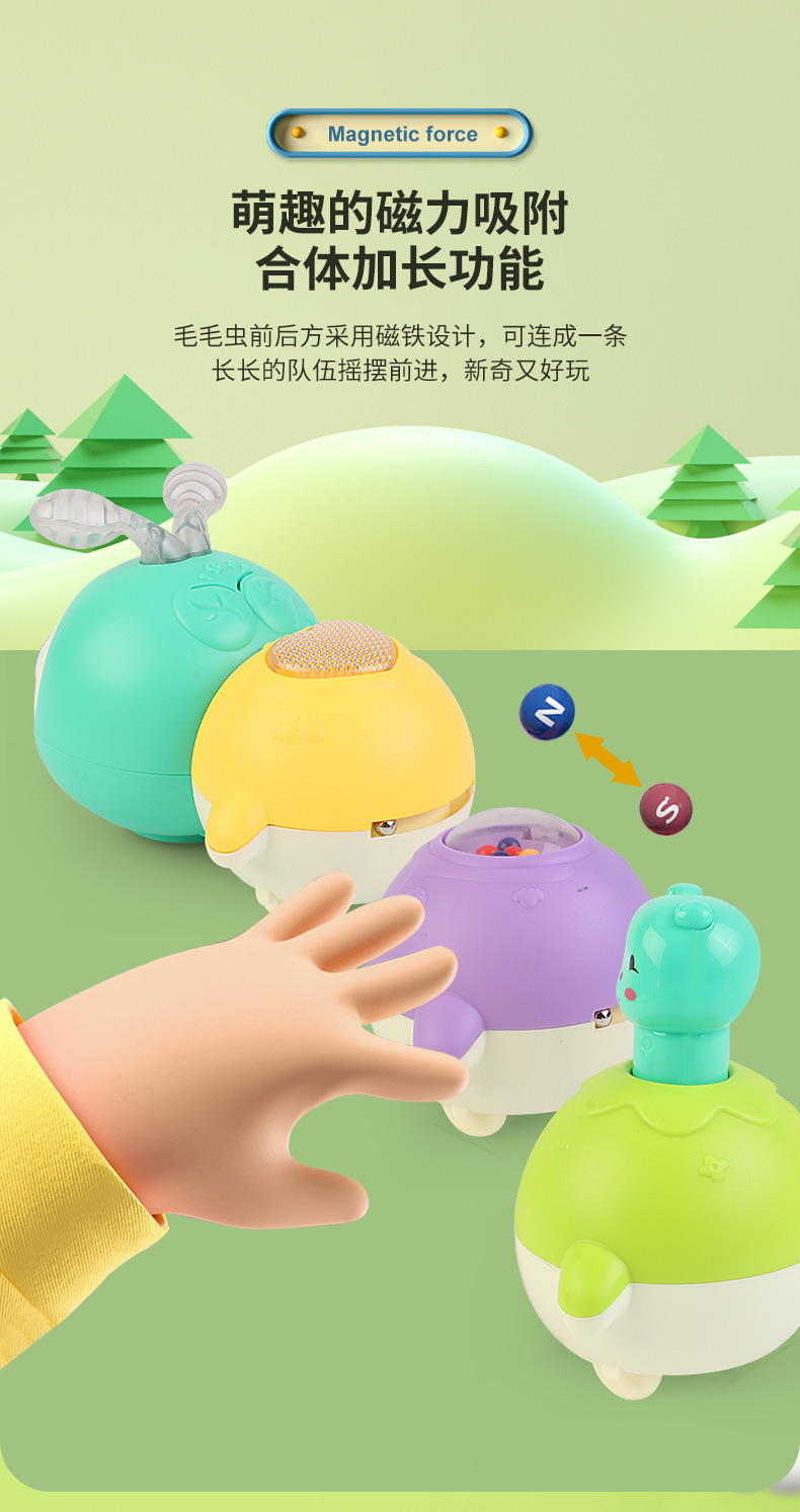 Douyin의 동일한 전기 범용 자기 스윙 애벌레 음악 조명 만화 동물 유아 교육 장난감스토어 가기