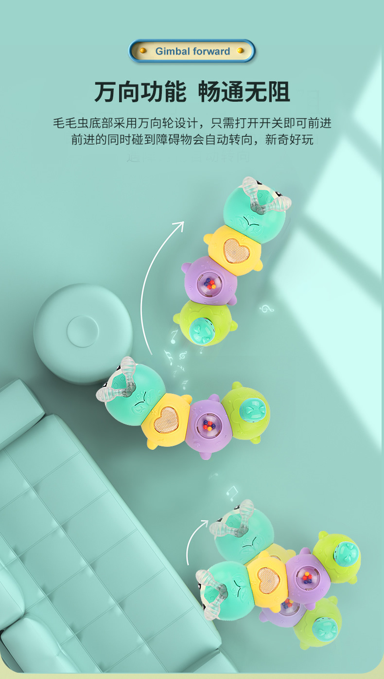 Douyin의 동일한 전기 범용 자기 스윙 애벌레 음악 조명 만화 동물 유아 교육 장난감