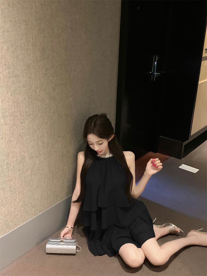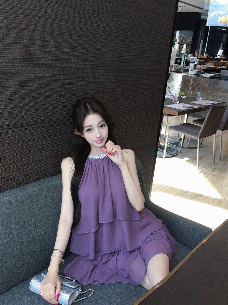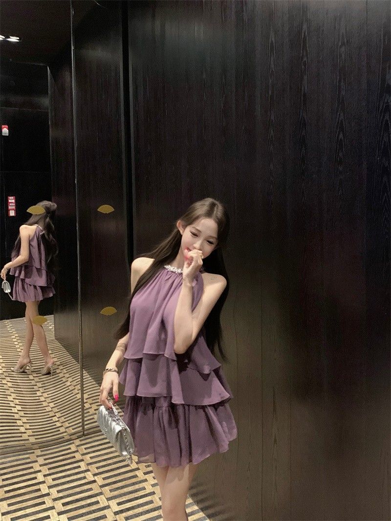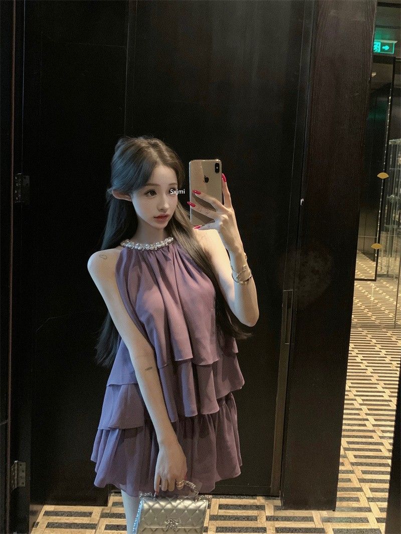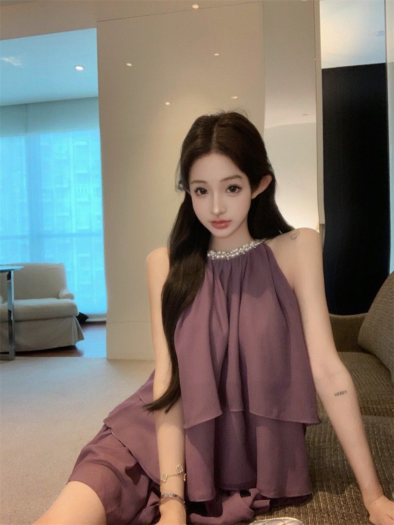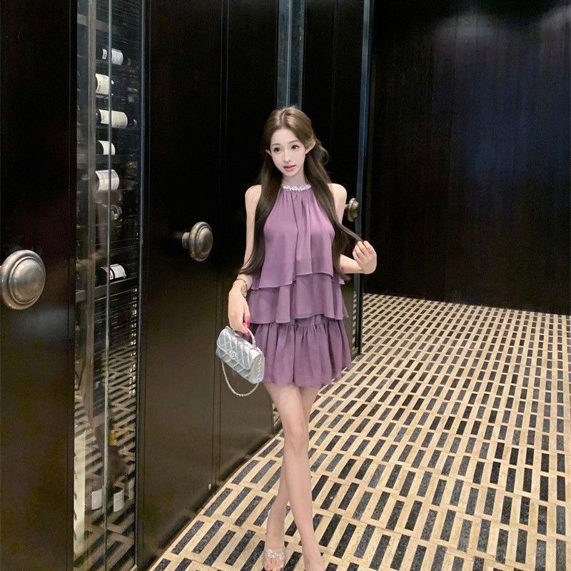 부잣집 딸 스타일 의상, 프렌치 퍼플 헤비탑, 여성 여름 스커트, 숏스커트, 투피스 세트