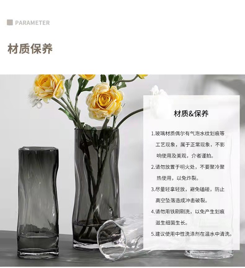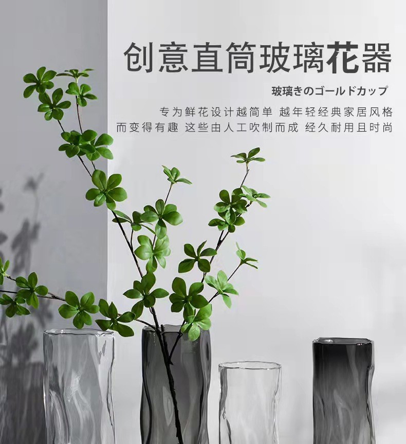 간단한 유리 꽃병 투명 물 부자 대나무 꽃 장미 대구경 꽃병 거실 데스크탑 장식 장식품스토어 가기