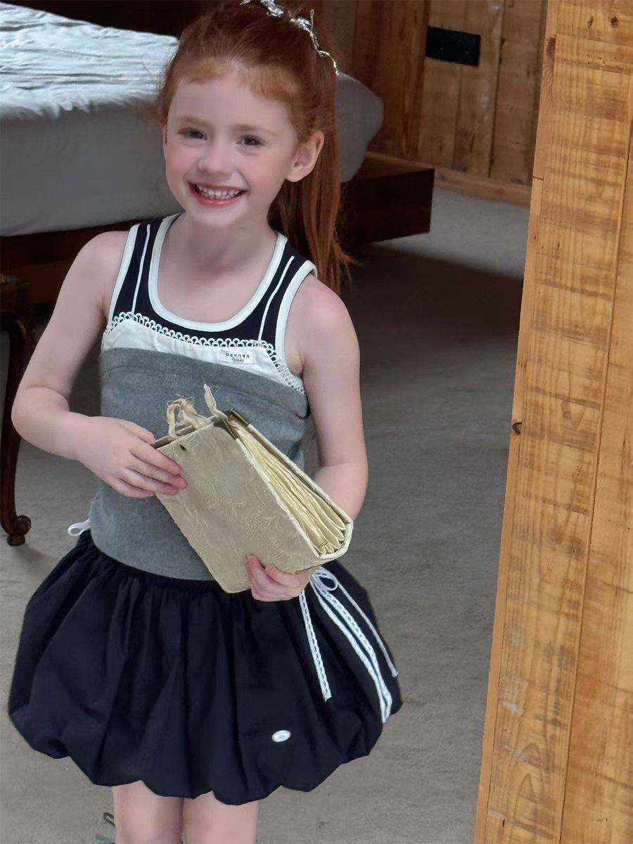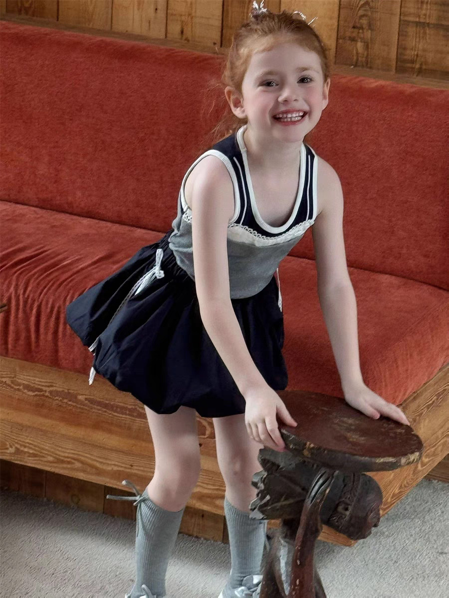여아 여름 정장 miu 스타일 여아 패션 가짜 투피스 컬러 블록 캐미솔 아동용 레이스 버드 스커트 트렌디