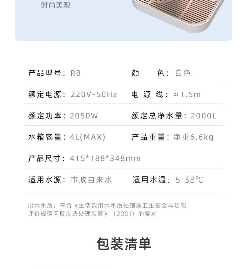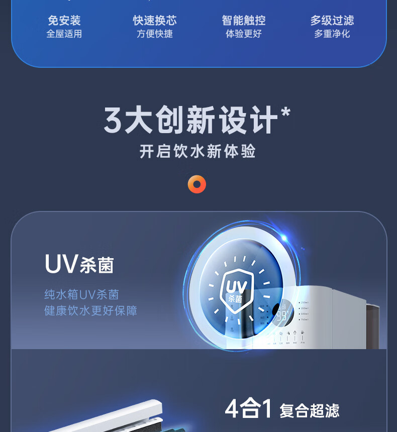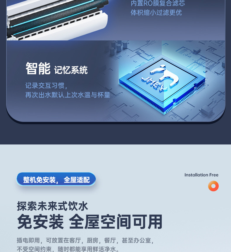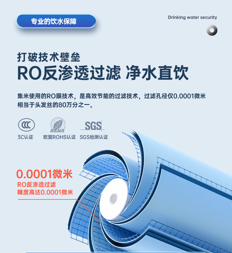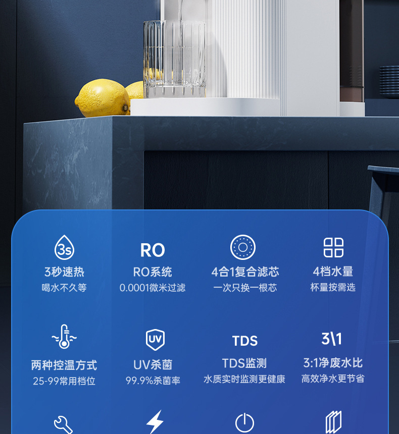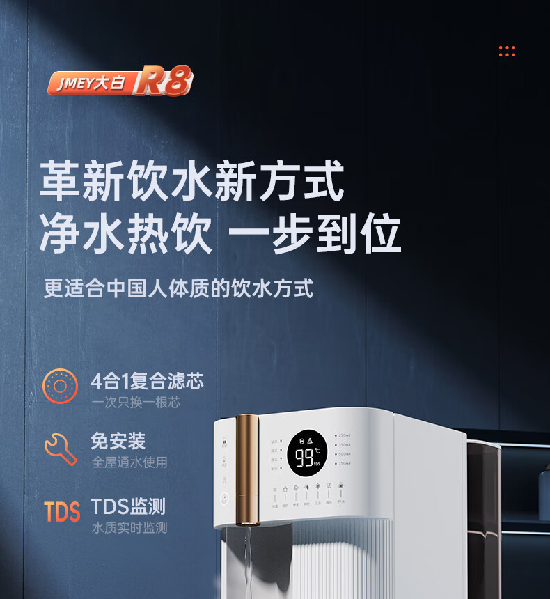 Jimi R8 정수기 RO 역삼투 정수기 가정 및 사무실용 온수 및 직접 음용 올인원 기계 설치 불필요스토어 가기