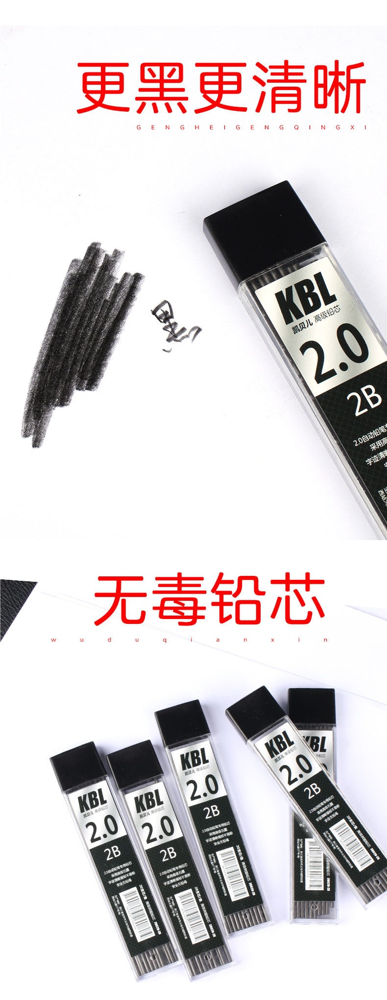 2.0심 2B연필심 2.0mm 자동연필 대형박스 굵은심 자동펜심 나침반 리필
