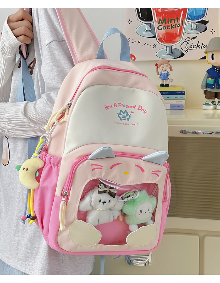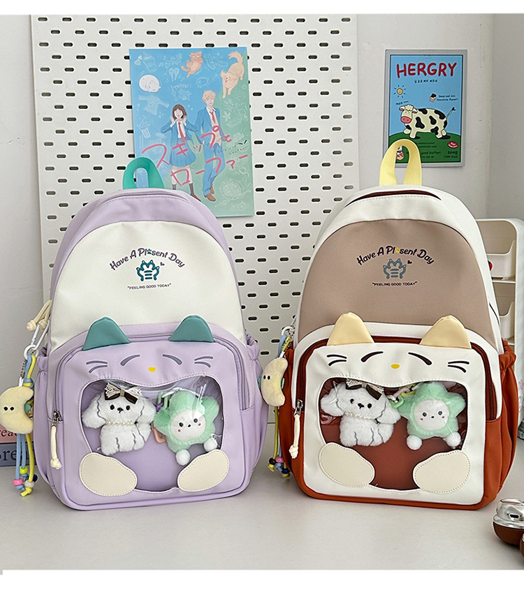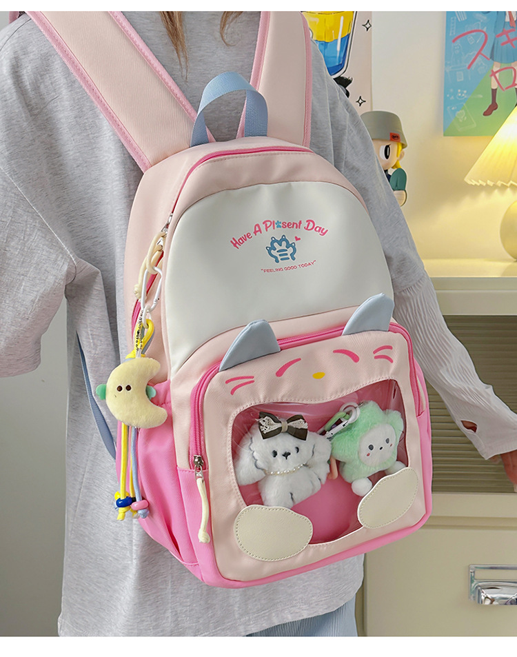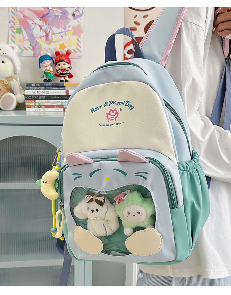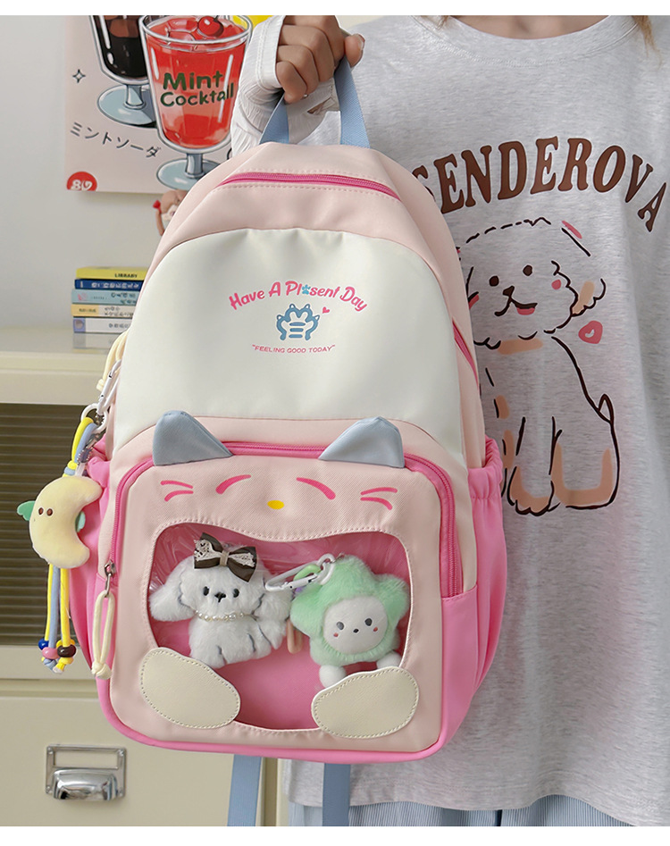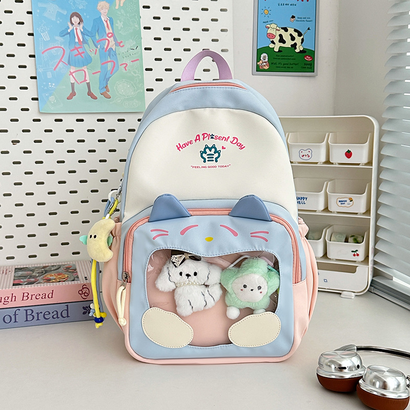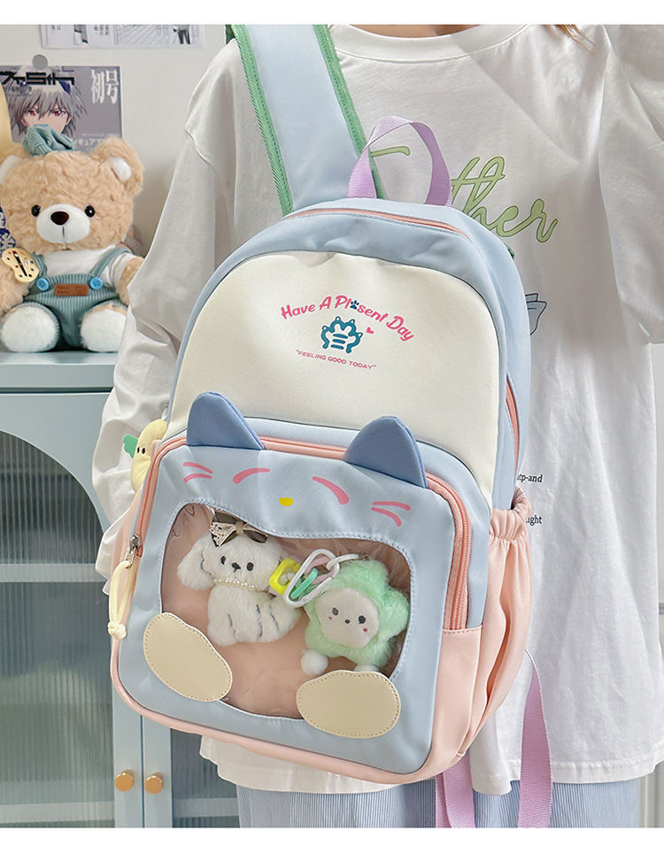 국경을 넘는 새로운 학생 책가방, 트렌디한 통통한 가방, 귀여운 대용량 중, 고등학생 투명 책가방, 여성용 배낭스토어 가기