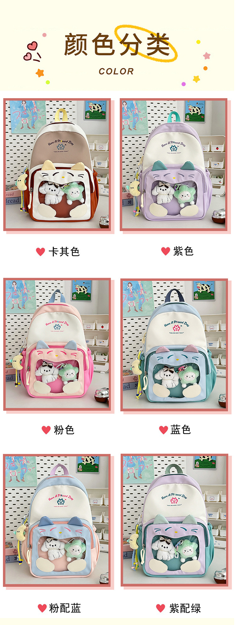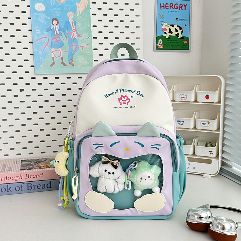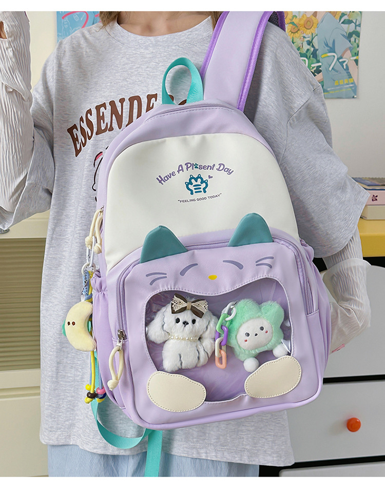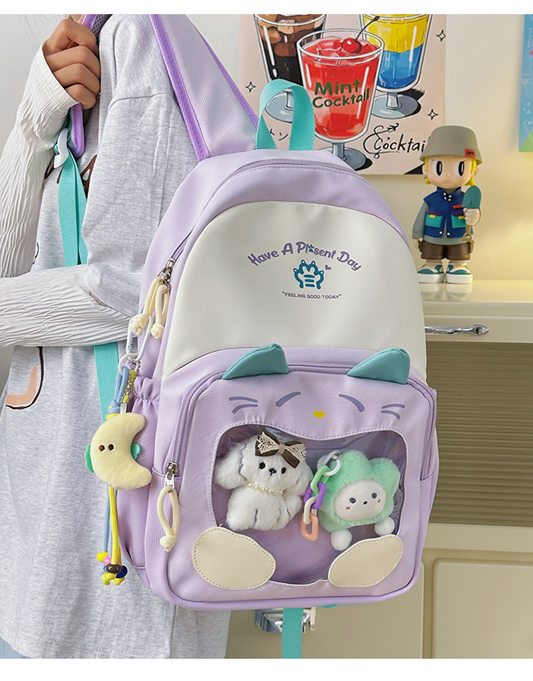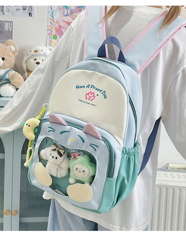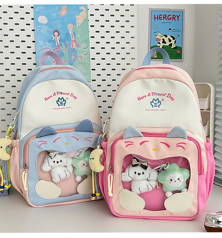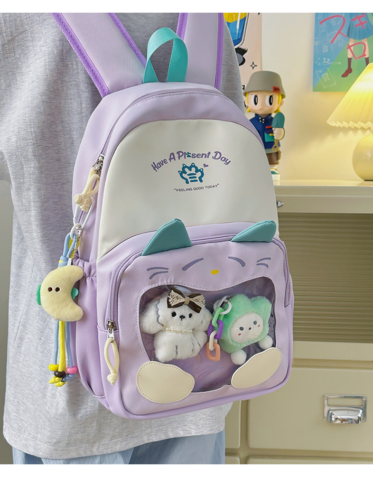 국경을 넘는 새로운 학생 책가방, 트렌디한 통통한 가방, 귀여운 대용량 중, 고등학생 투명 책가방, 여성용 배낭스토어 가기