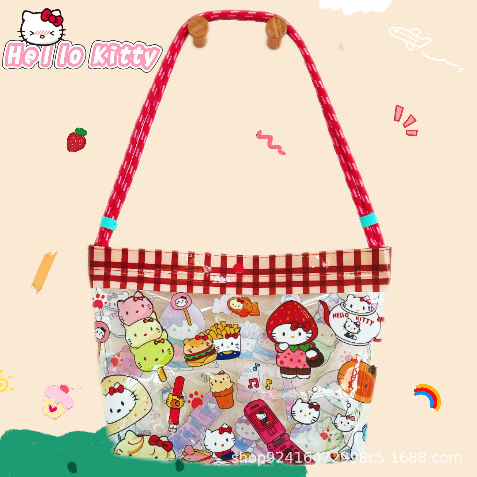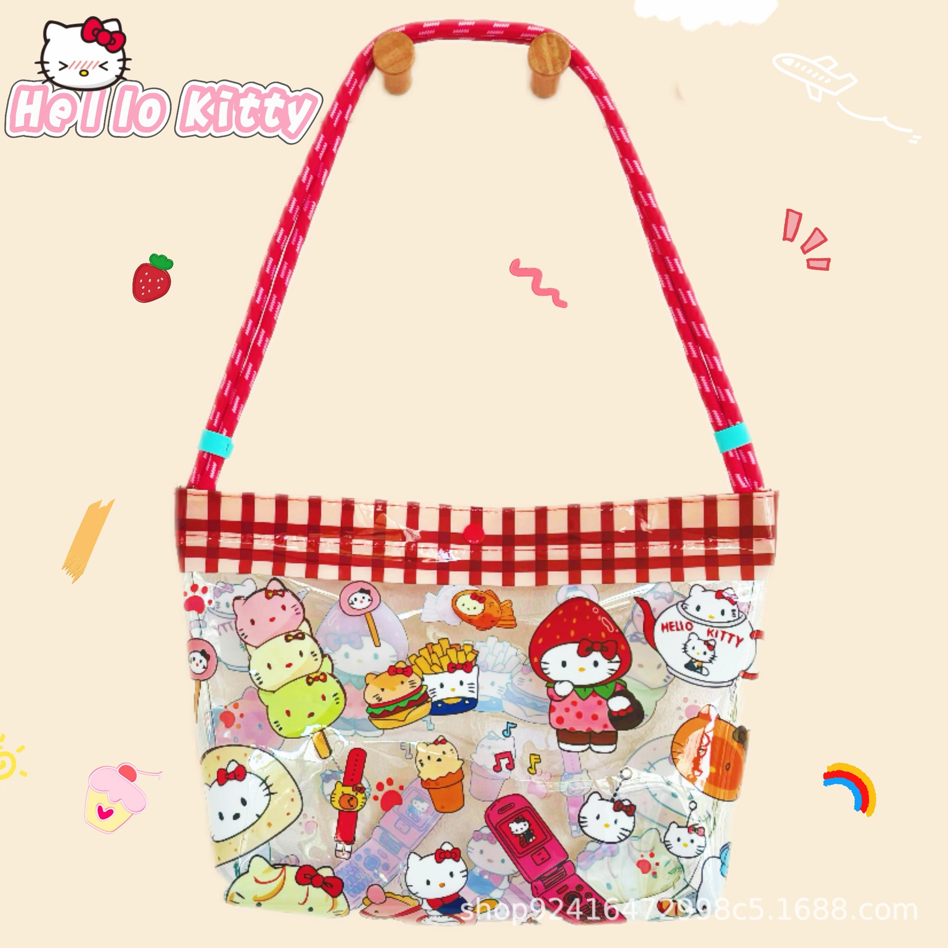 헬로 키티 PVC 핸드백 소녀 대용량 방수 핸드백 만화 어깨 비치 가방 젤리 가방