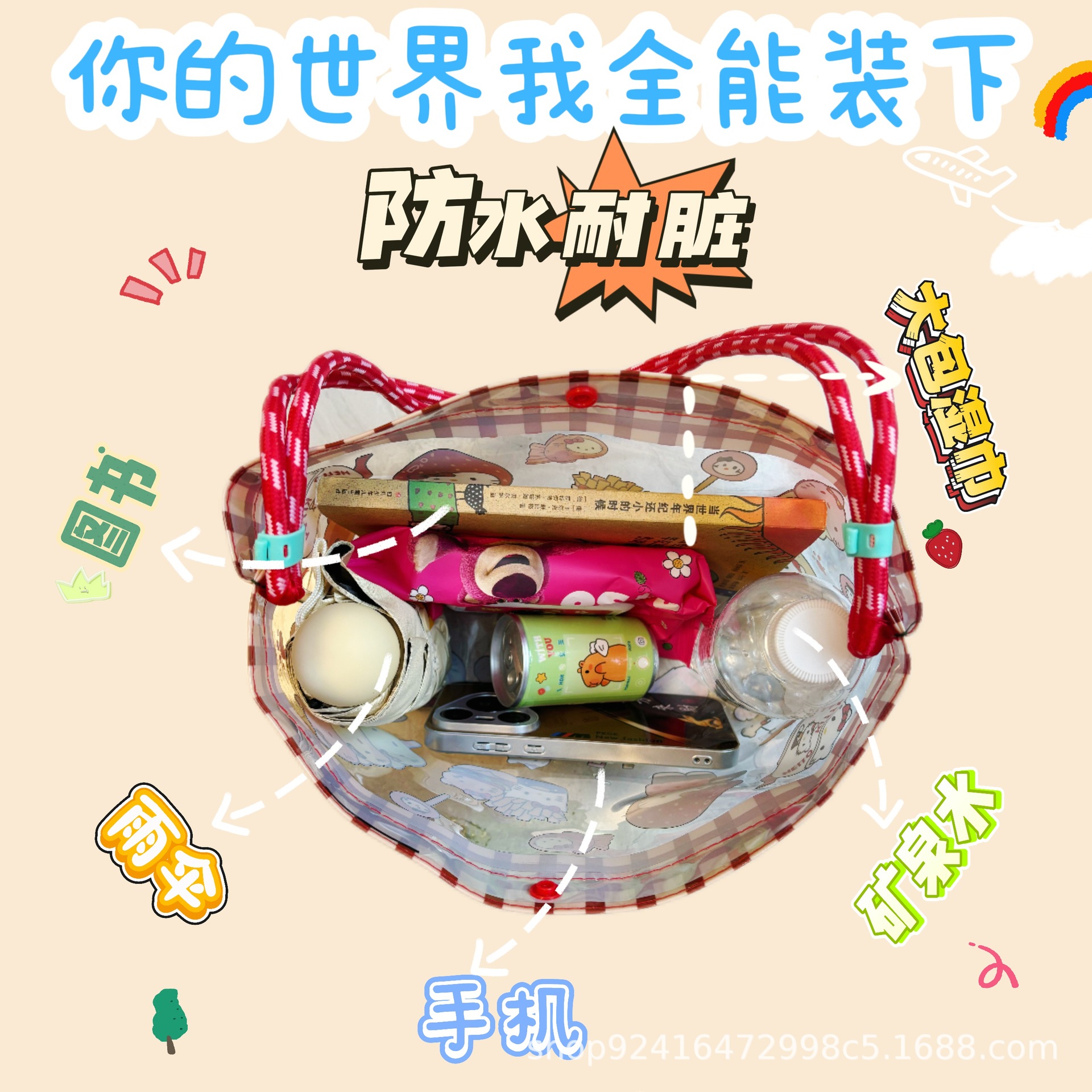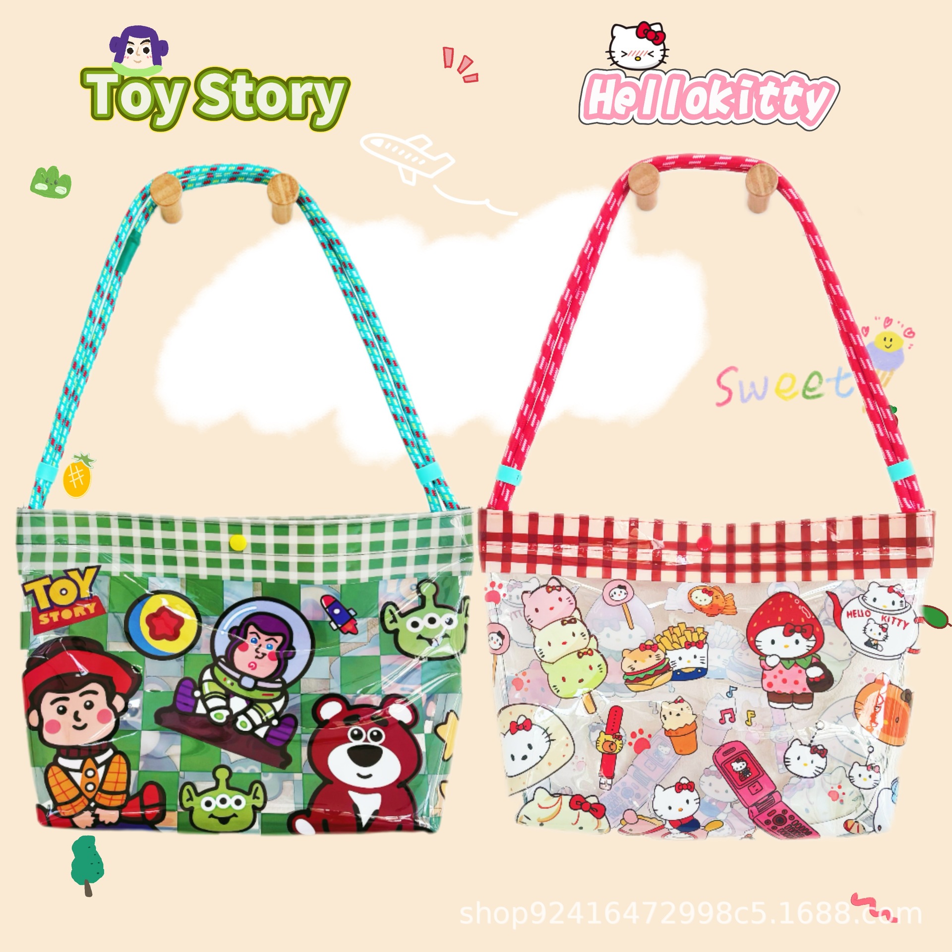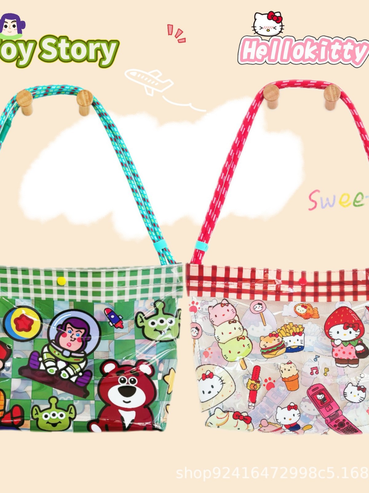 헬로 키티 PVC 핸드백 소녀 대용량 방수 핸드백 만화 어깨 비치 가방 젤리 가방스토어 가기