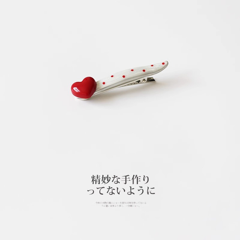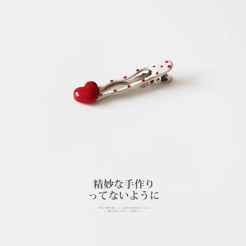 • [페어세트] 레드 러브 도트 버드나무 리프 클립