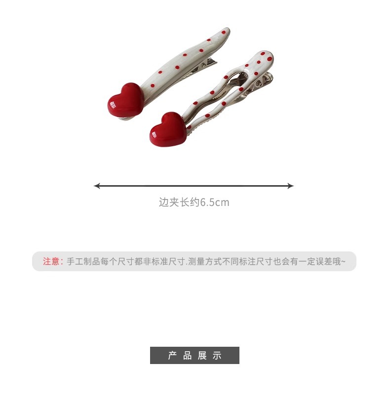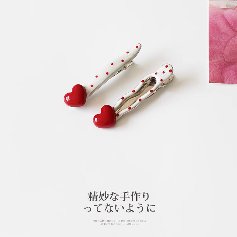 여성용 레드 도트무늬 러브뱅 머리핀, 이마 사이드 클립, 심플하고 우아한 뒷머리 사이드 머리핀 헤어 액세서리