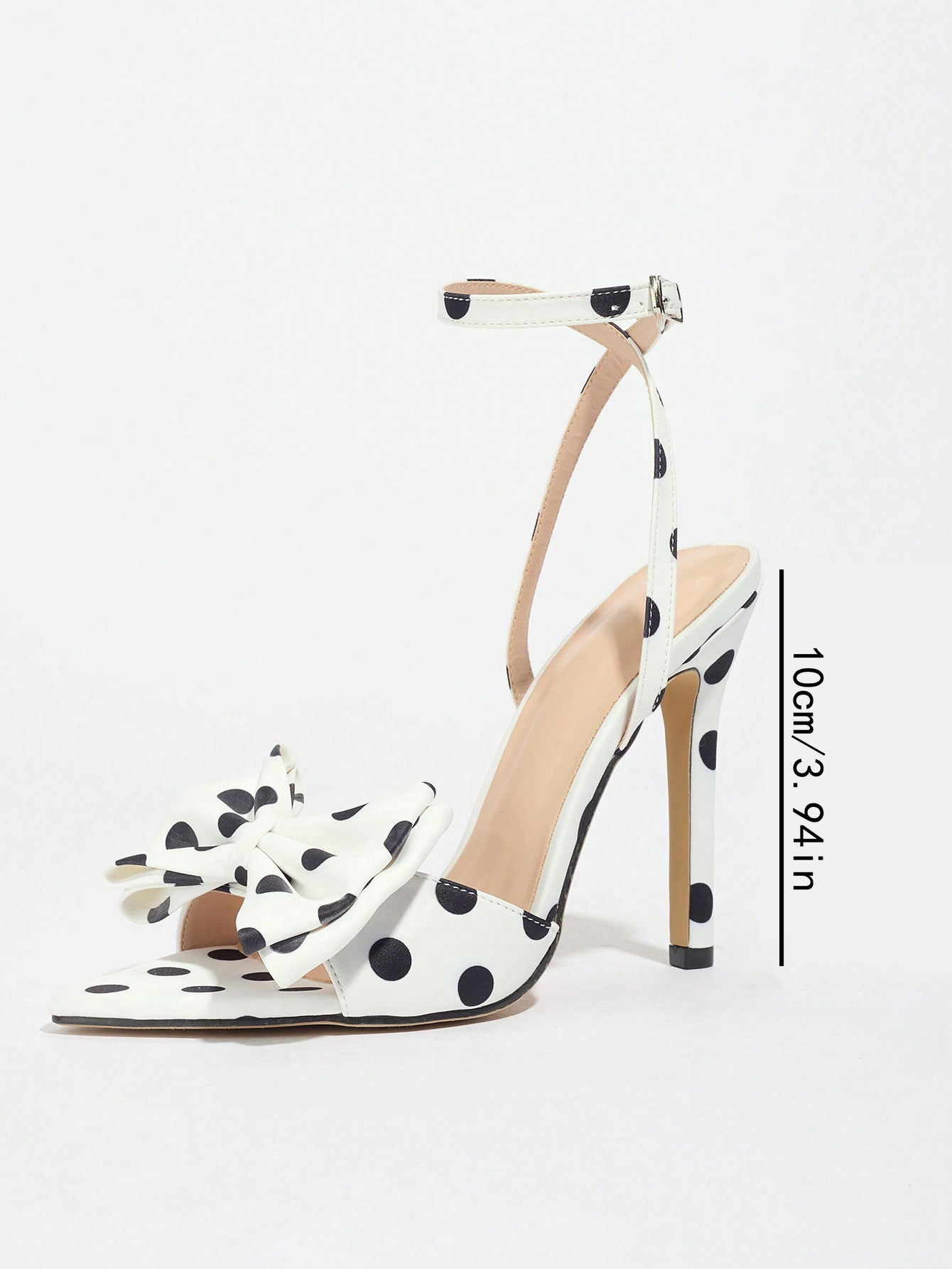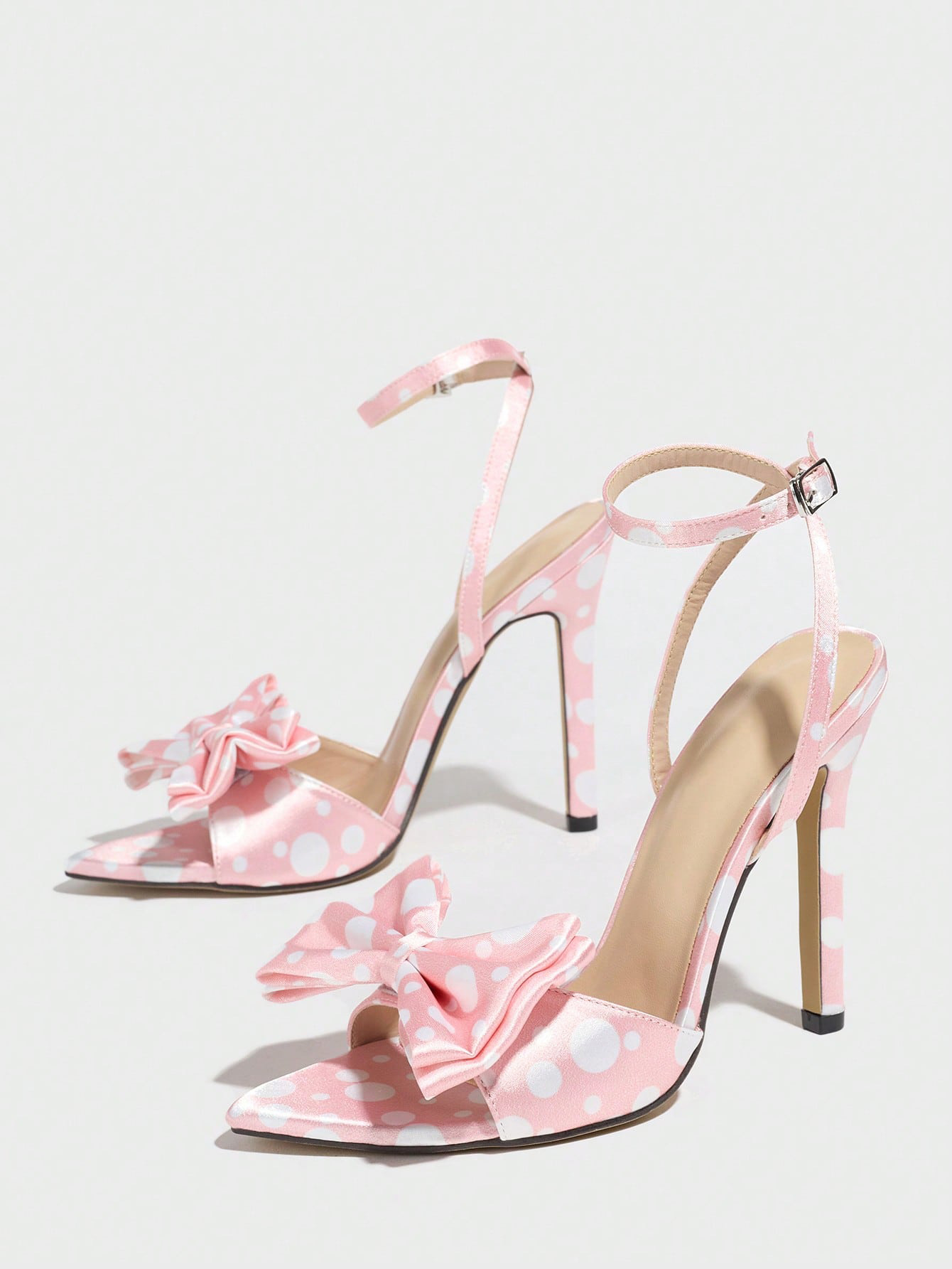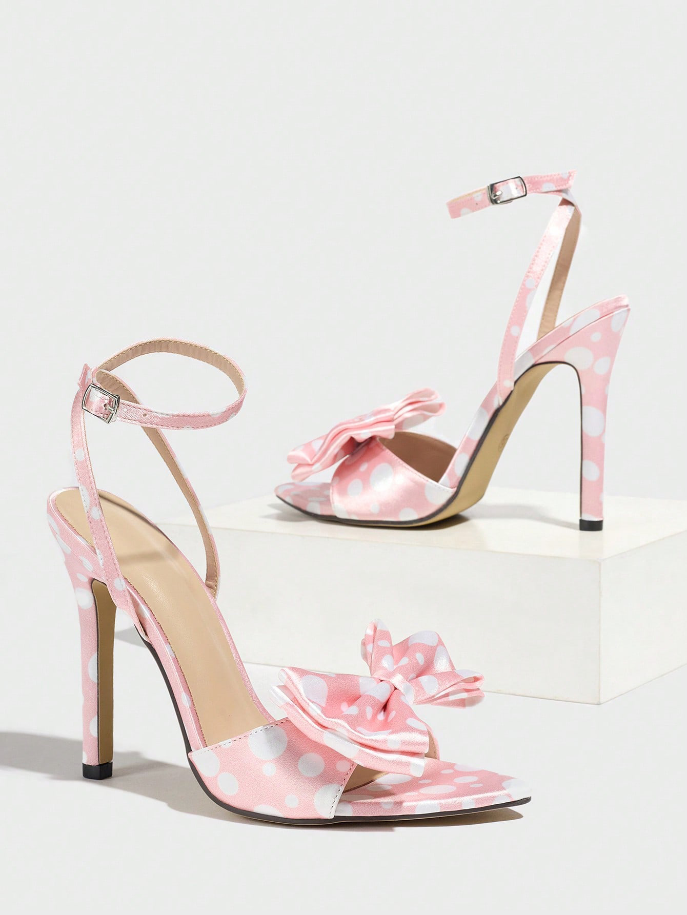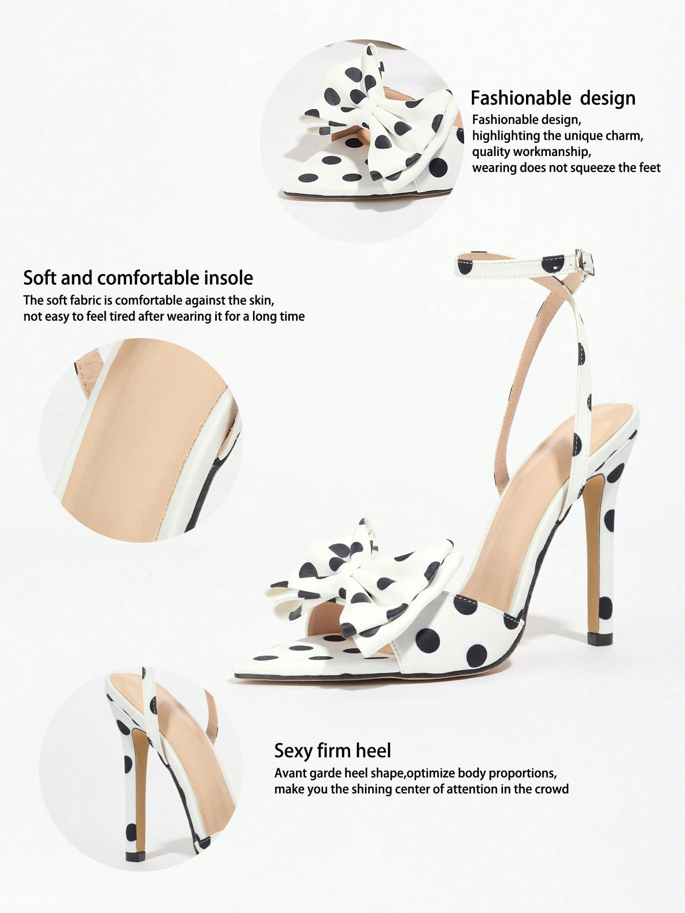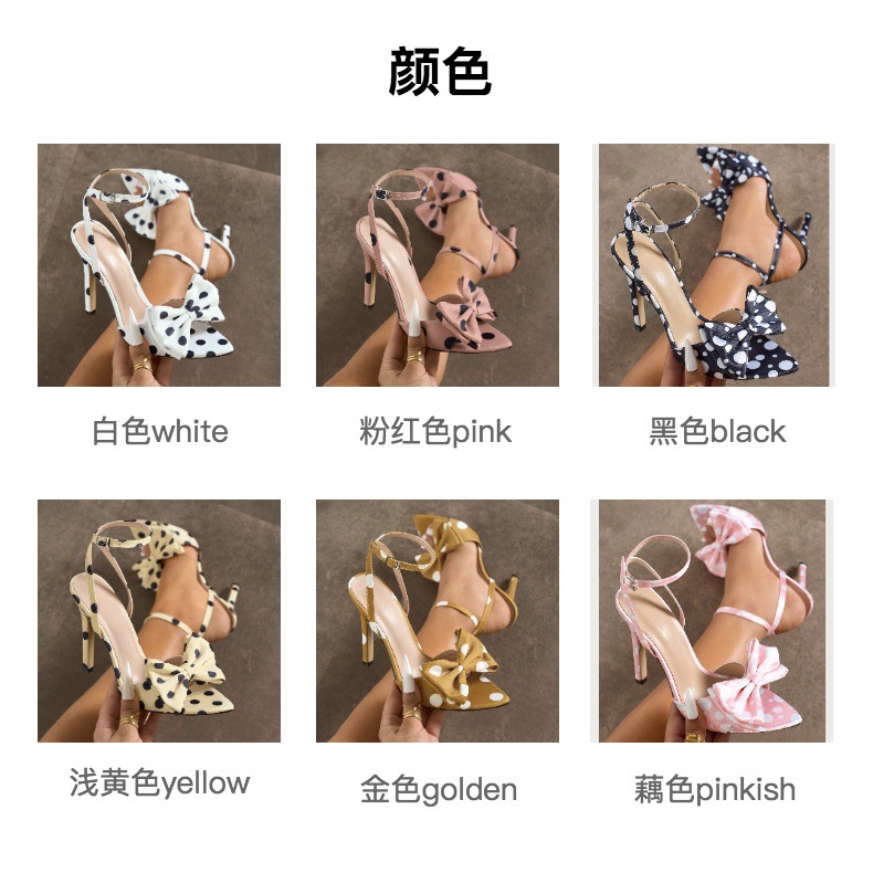 여성용 하이힐 샌들 클래식 웨이브 포인트 실크 질감 절묘한 나비 매듭 부드럽고 우아한 대학 스타일 하이힐
