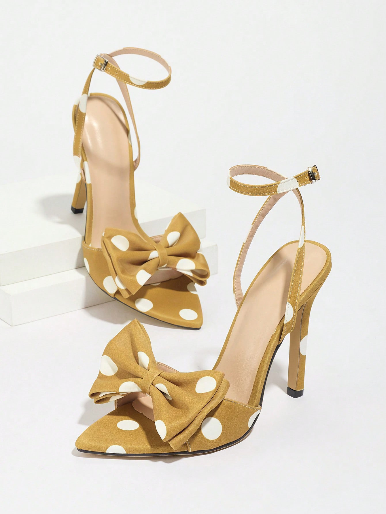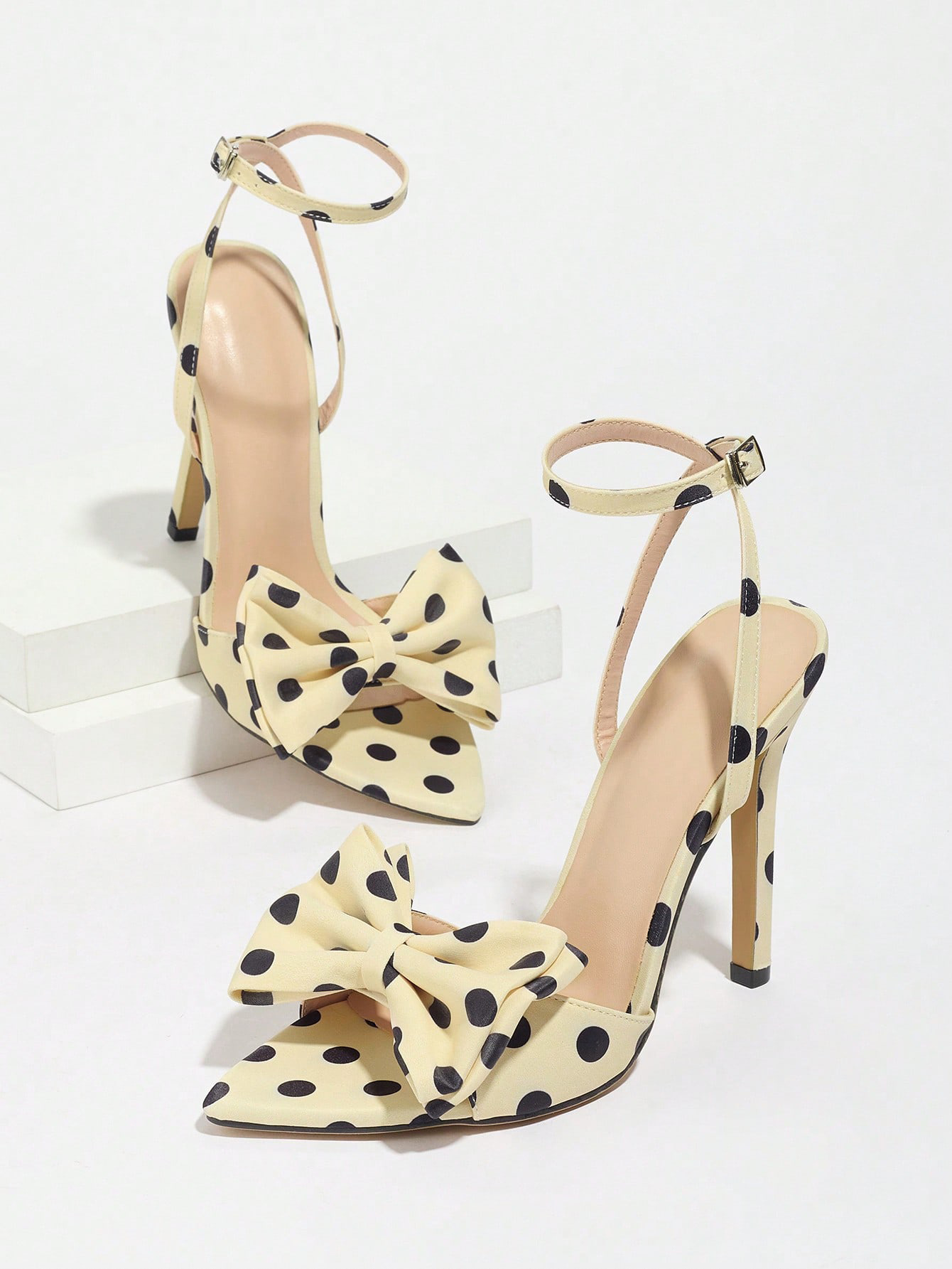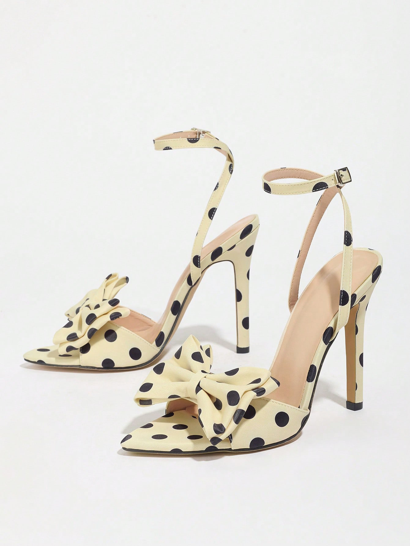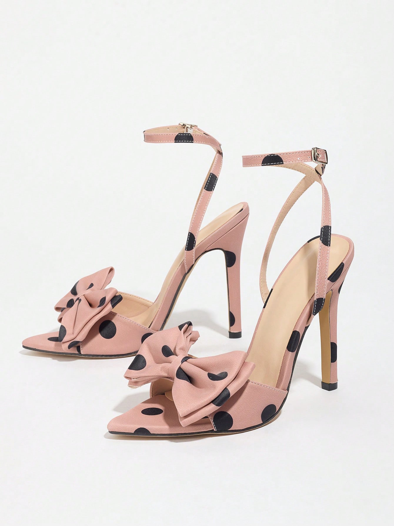여성용 하이힐 샌들 클래식 웨이브 포인트 실크 질감 절묘한 나비 매듭 부드럽고 우아한 대학 스타일 하이힐
