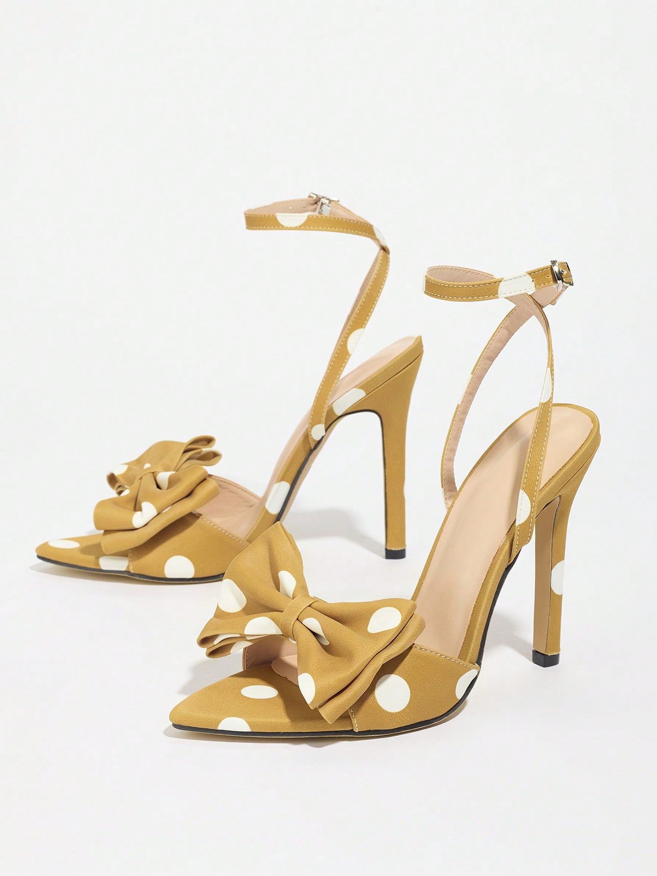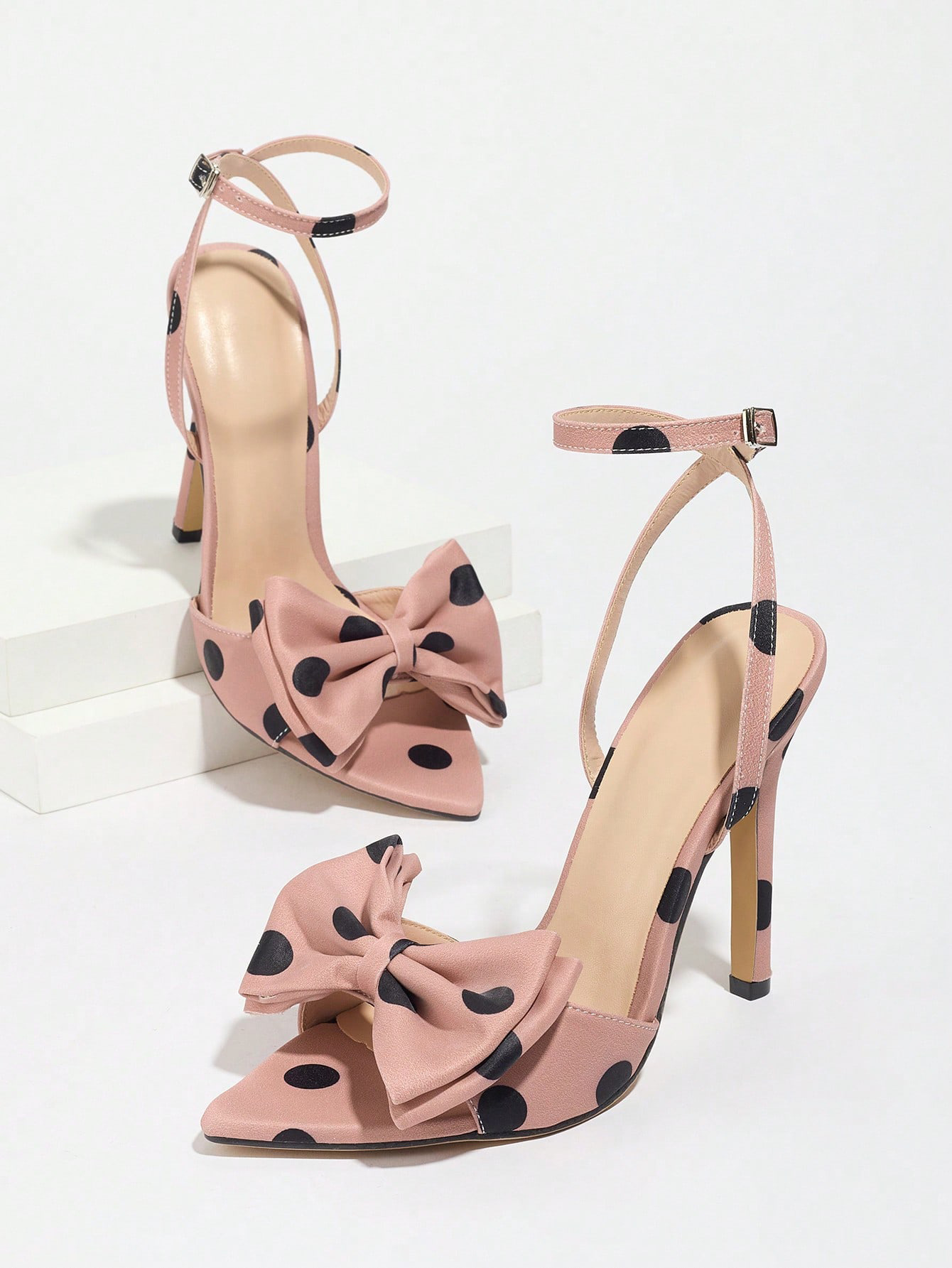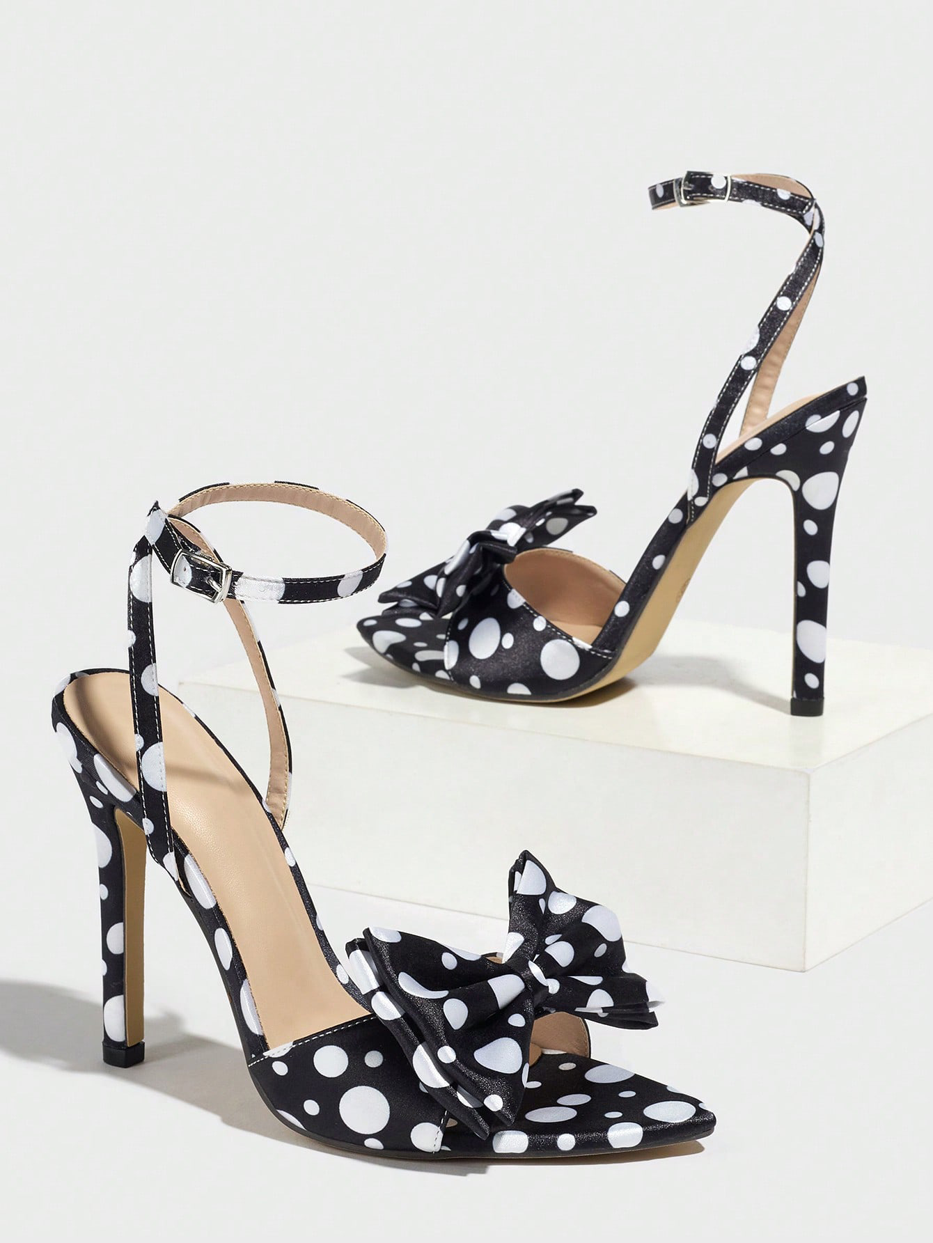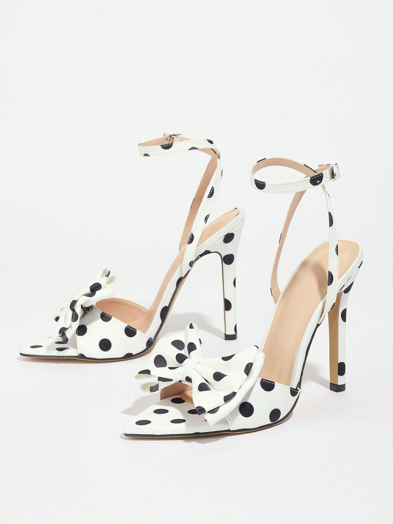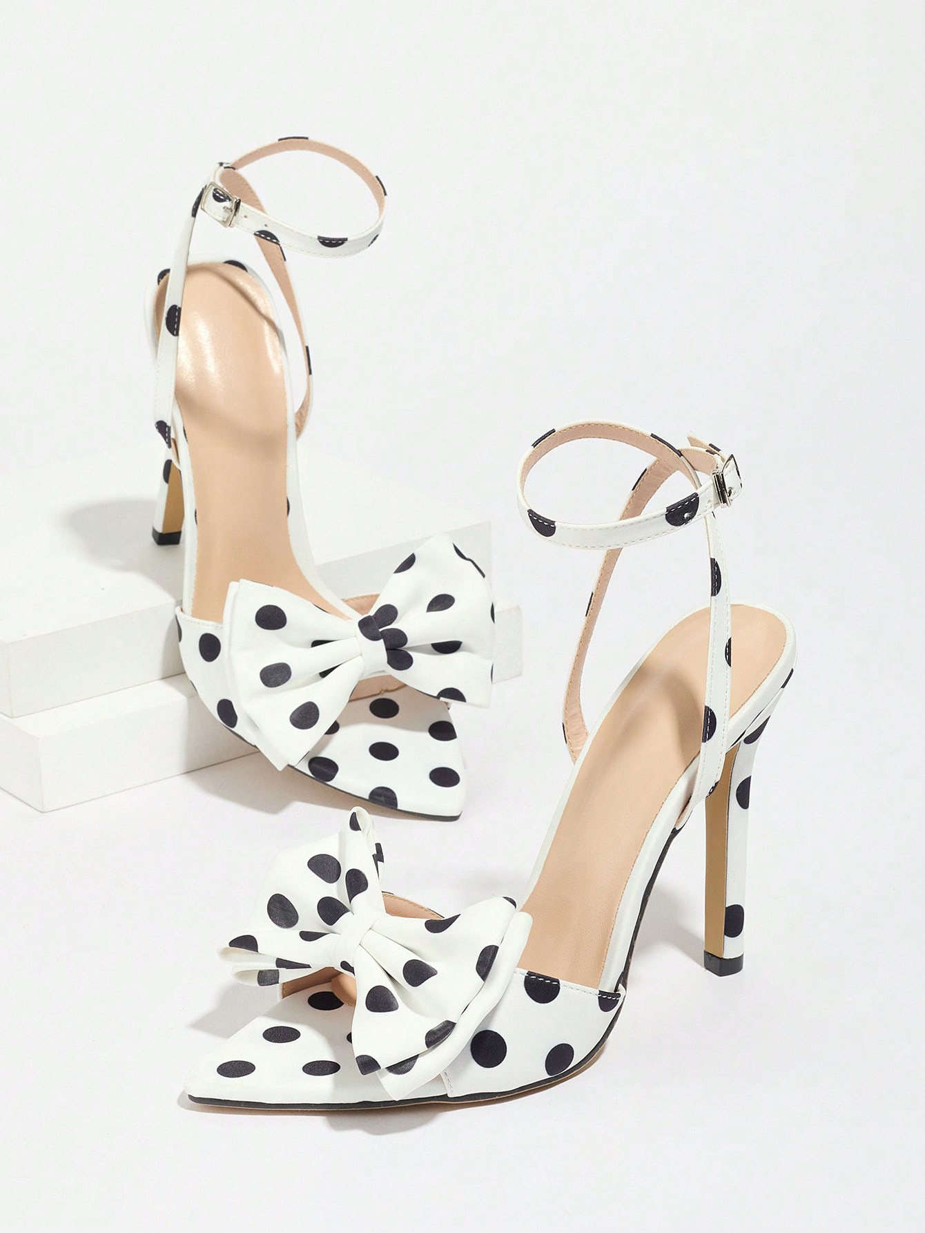 여성용 하이힐 샌들 클래식 웨이브 포인트 실크 질감 절묘한 나비 매듭 부드럽고 우아한 대학 스타일 하이힐