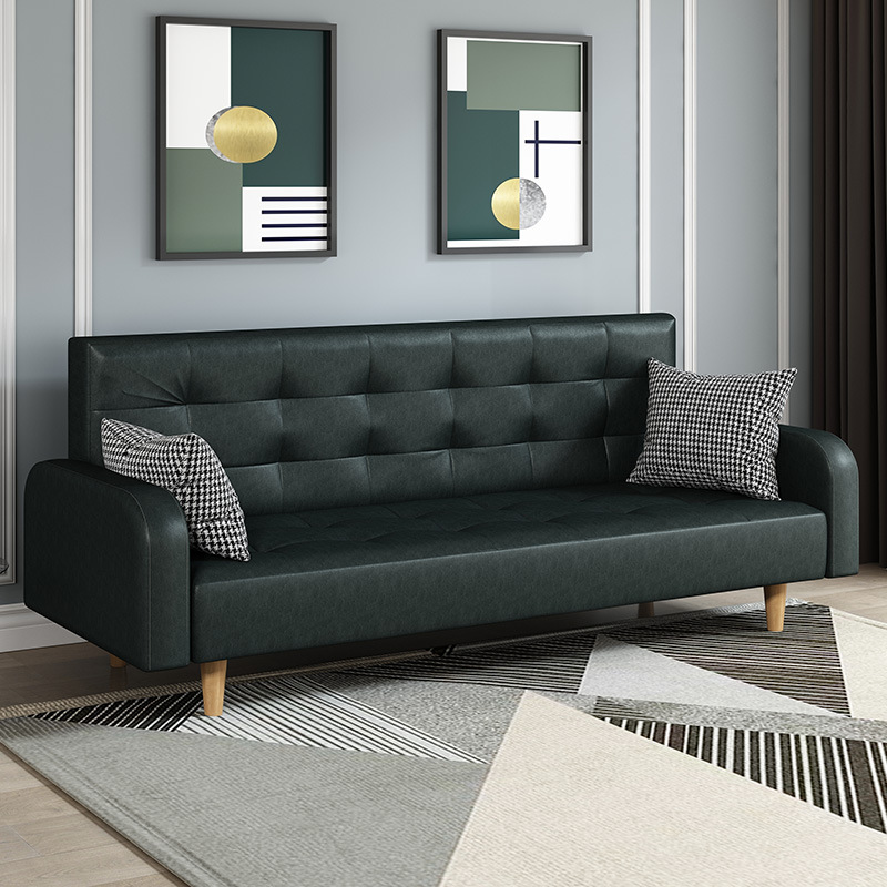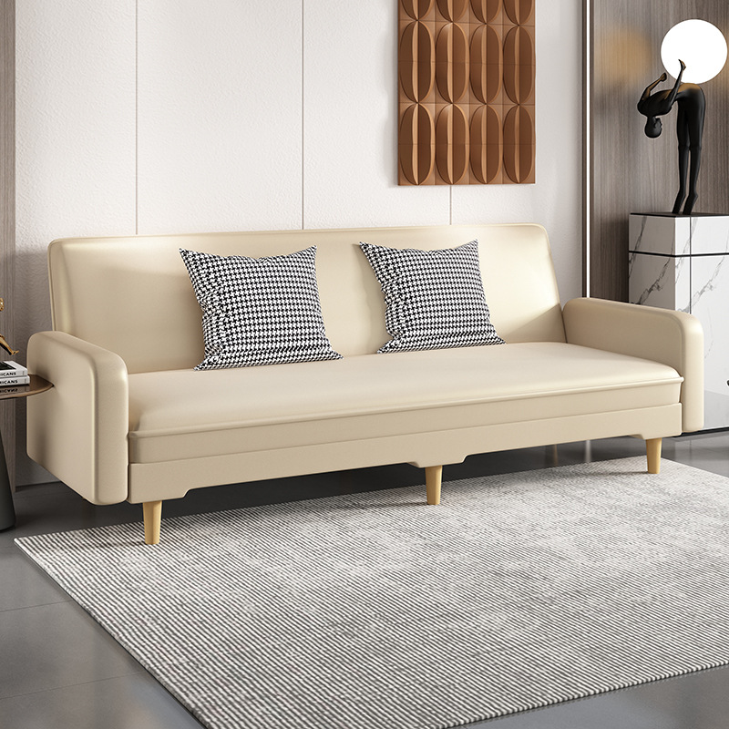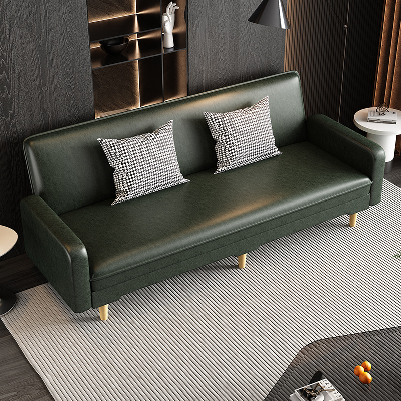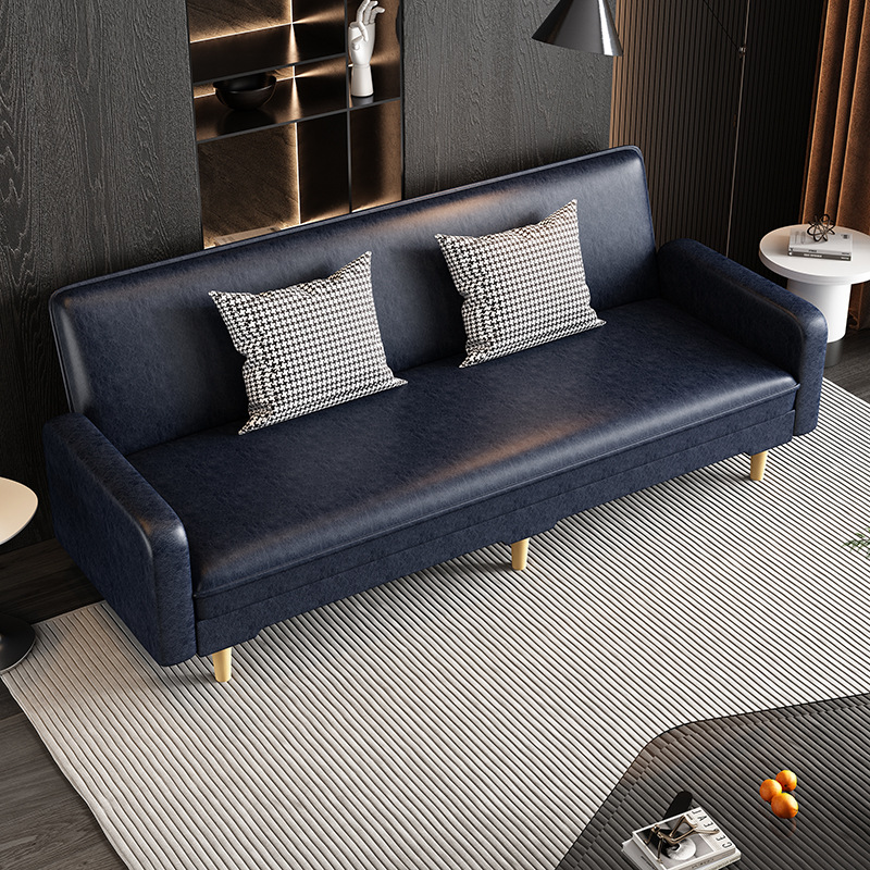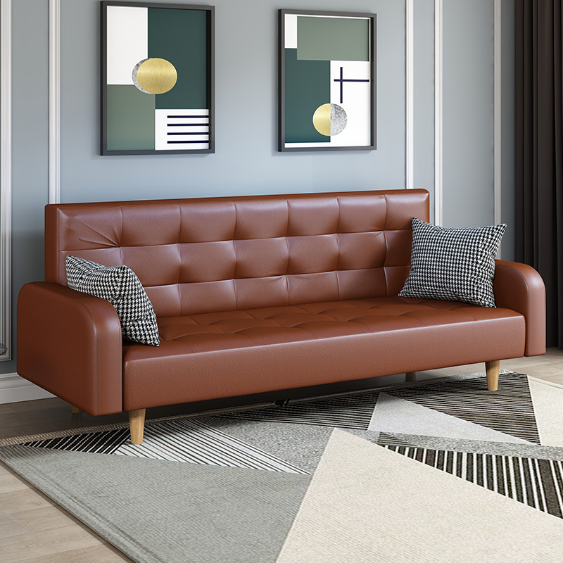 임대 주택 접이식 이중 목적 소파 새로운 오일 왁스 가죽 패브릭 3인용 소형 가정용 간단한 소파 베드