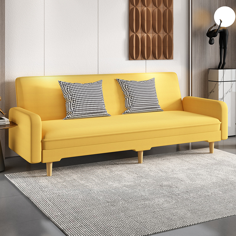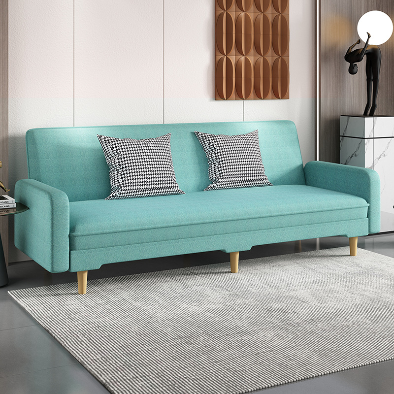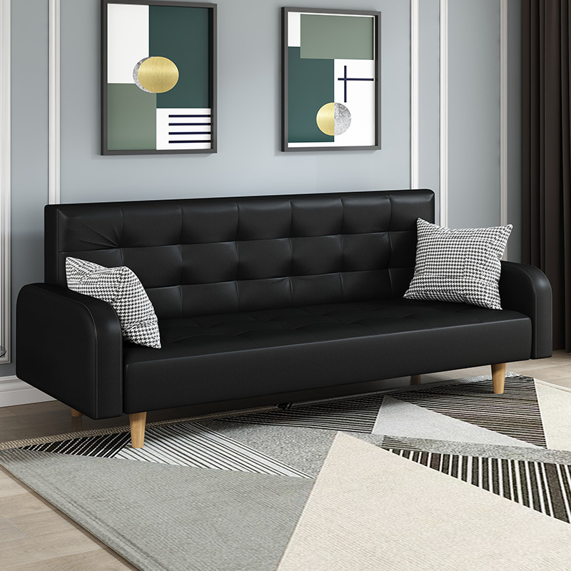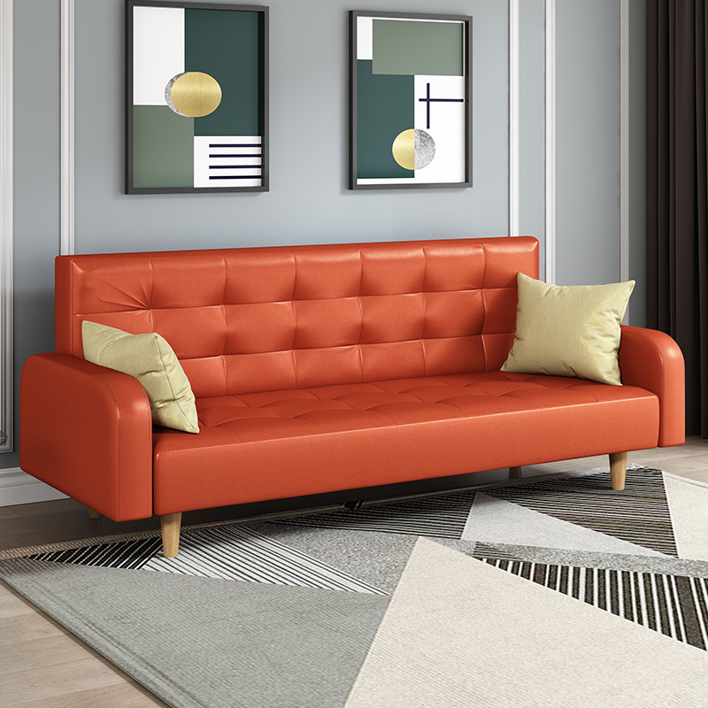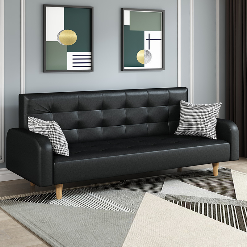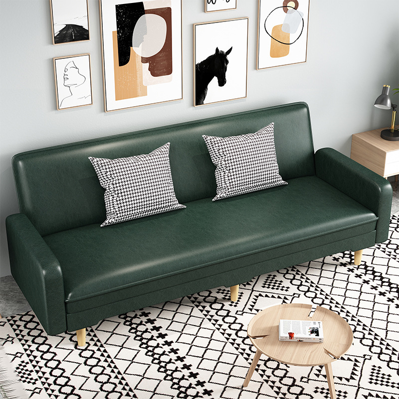 임대 주택 접이식 이중 목적 소파 새로운 오일 왁스 가죽 패브릭 3인용 소형 가정용 간단한 소파 베드